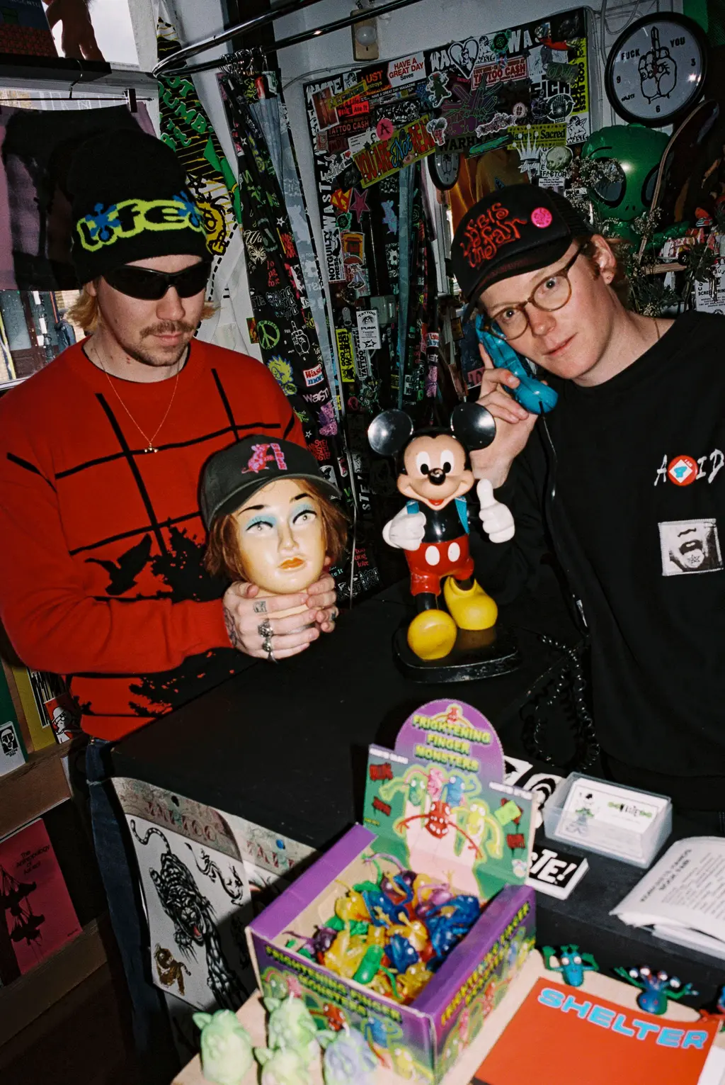 On a nondescript stretch of Hackney Road, East London, its interior rejects the clean and clinical to embrace a culture of clutter: counters covered with finger monsters, mood rings, mannequin heads and temporary tattoos. A vintage TV plays The Godfather on a loop in the corner. There are zines galore, fantastic fashion, wacky DIY cushions, troll doll keychains and a life-size creature from 1984 horror-comedy classic Gremlins.