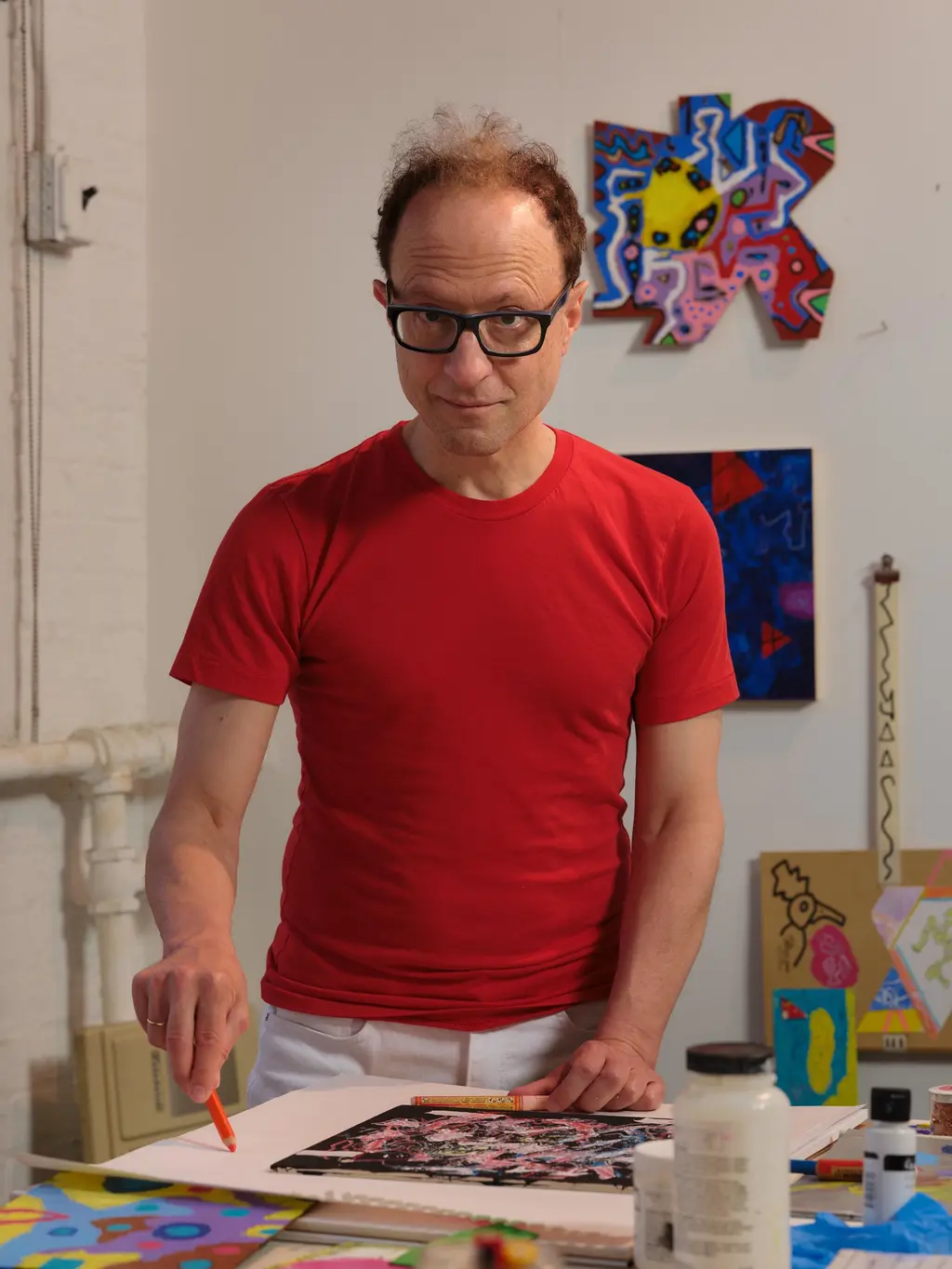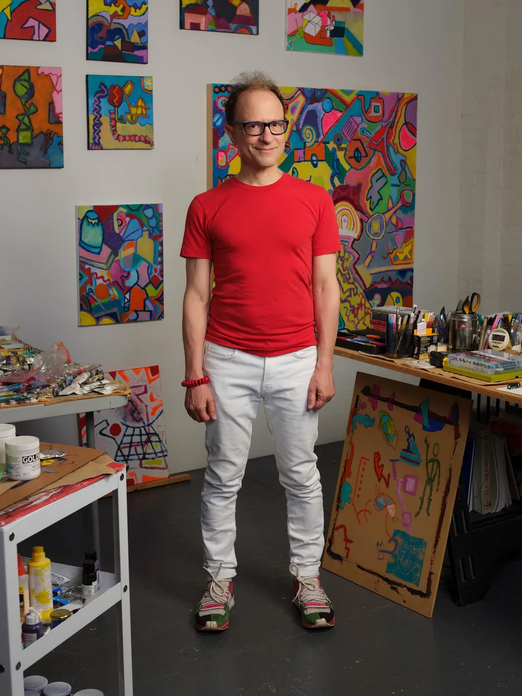 Instead, realising his talents lay elsewhere, Koestenbaum decided to become just about everything else: a poet, novelist, essayist, critic, teacher, painter and occasional ivory tinker. He’s the author of 19 books, including studies of opera divas and their gay male fans (The Queen’s Throat, 1993); Jackie O (Jackie Under My Skin, 1995); Andy Warhol (Andy Warhol, 2001); and Harpo Marx (The Anatomy of Harpo Marx, 2012), as well as several collections of poetry – most recently Camp Marmalade (2018). He’s also been making art for the past 15 years and has exhibited his hyper-colourful canvases around the country, to much acclaim.