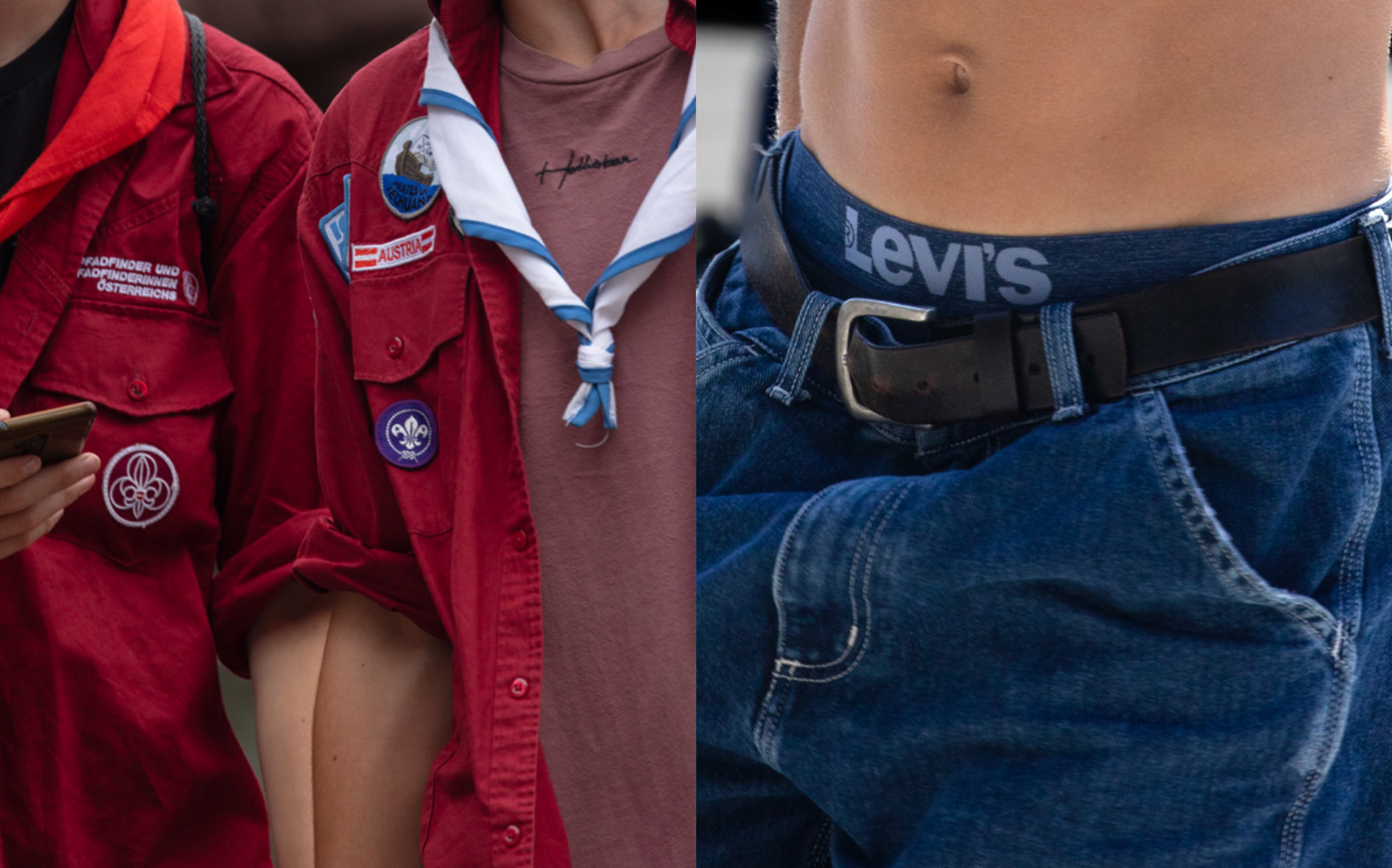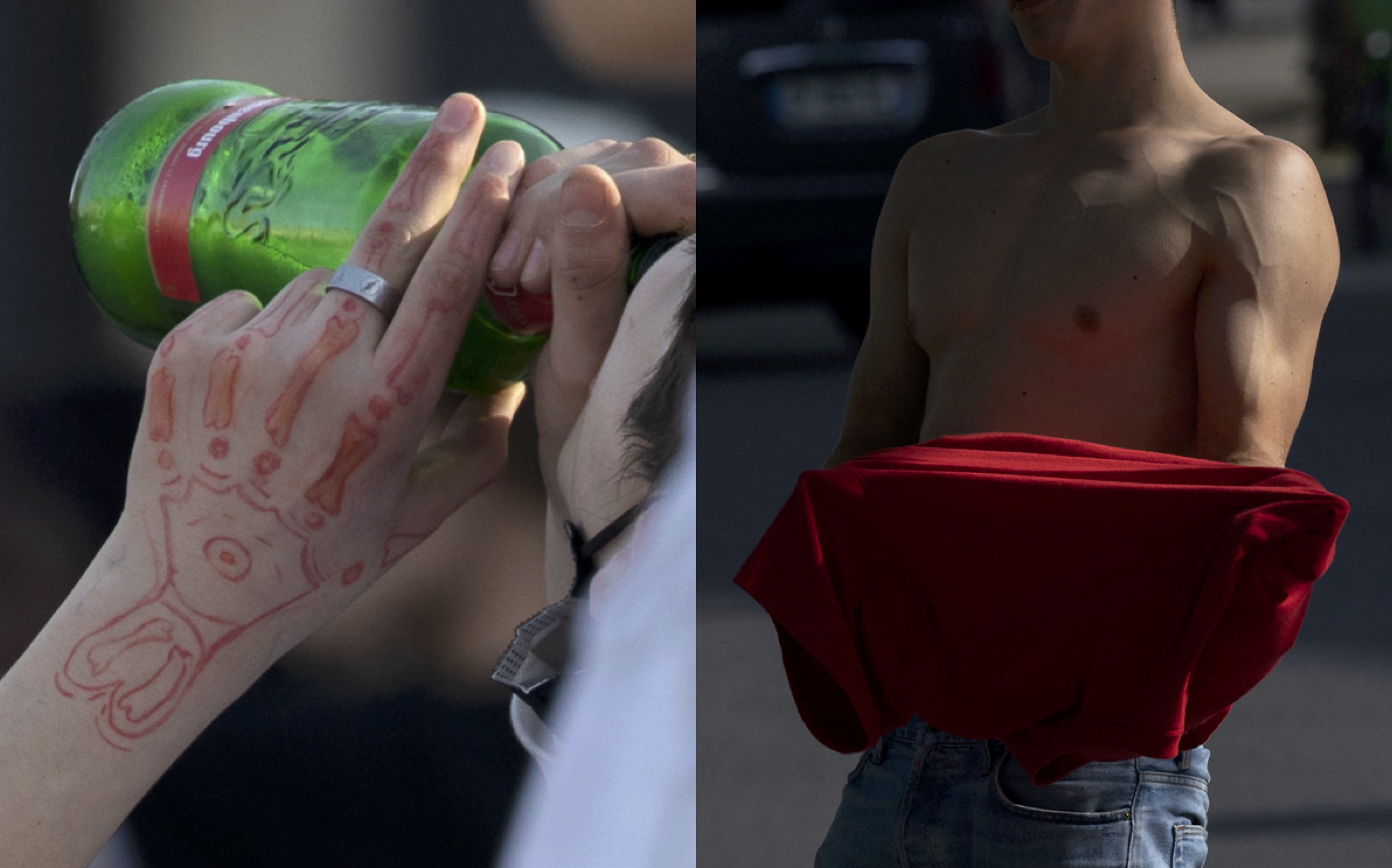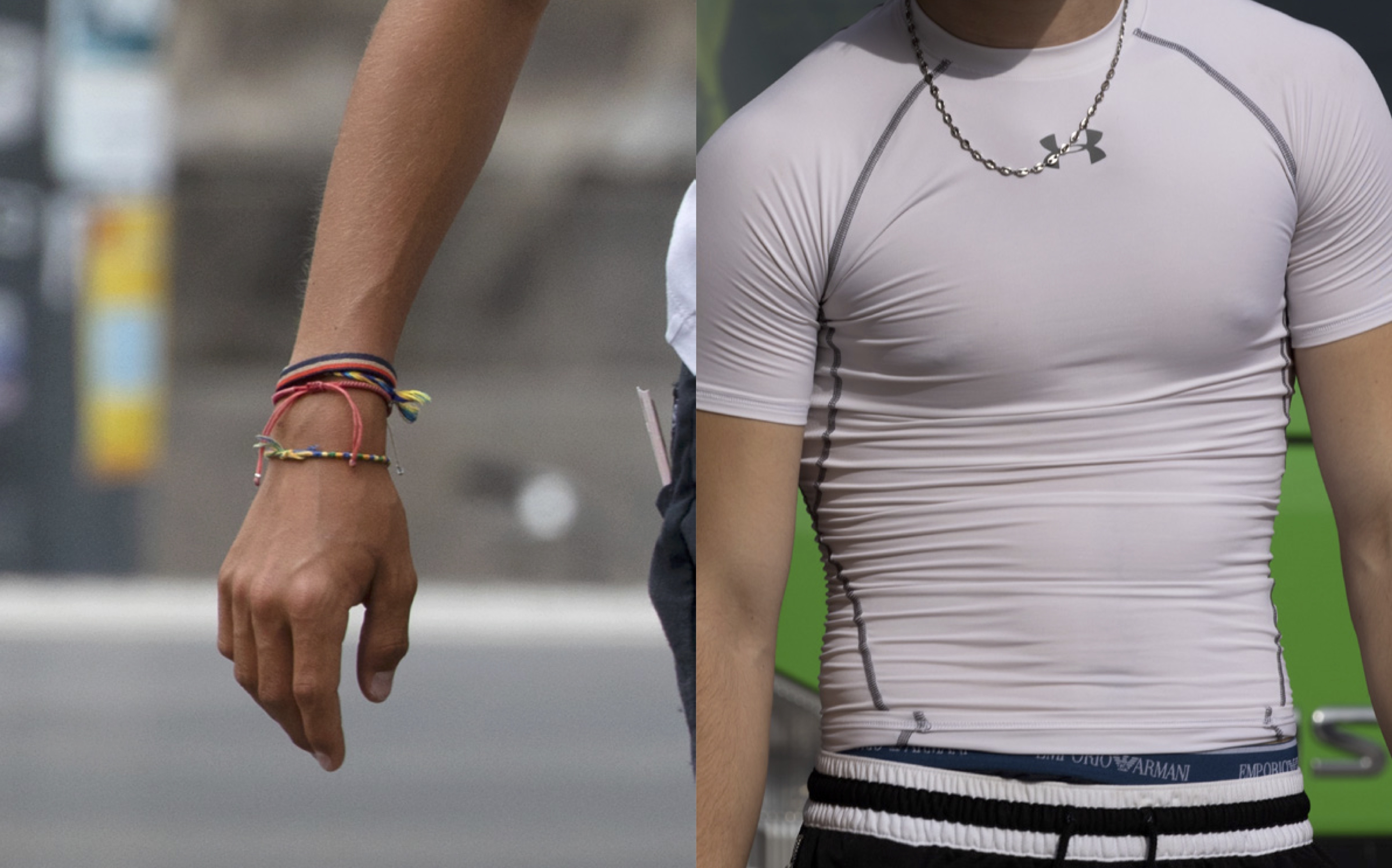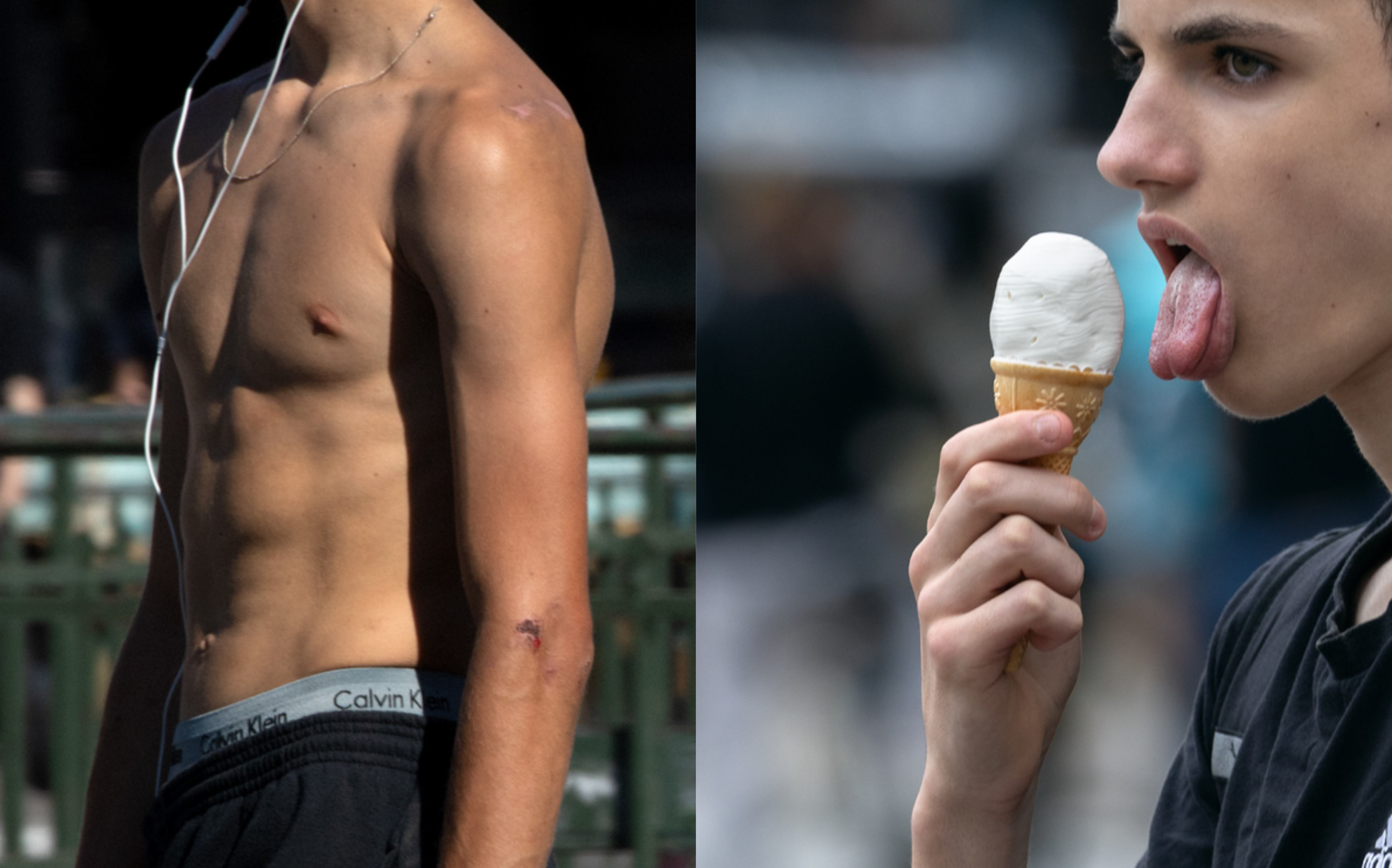 But what he’s interested in isn’t wildlife or architecture. Instead, he’s laser-focused on the teenagers who congregate in clouds of vape smoke, swigging coolly from bottles of ice tea. Dressed in Nike joggers and North Face waterproofs, they gas each other up as the sun glints off their heavy-set chains.