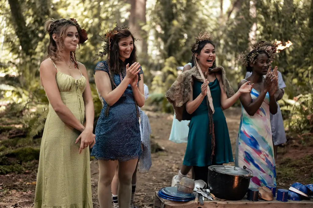 “It’s not like they skimped on the budgeting for the props. They didn’t do any of this in post [-production]. This was all real. So we had to be made of really strong stuff when we were acting. For the scene where we were eating the [first] deer, they used old squishy tofu slathered in hot sauce. They told us: ‘Eat like you’re starving.’ So we were all ripping it with our teeth and nails, licking our fingers, really animalistic stuff.