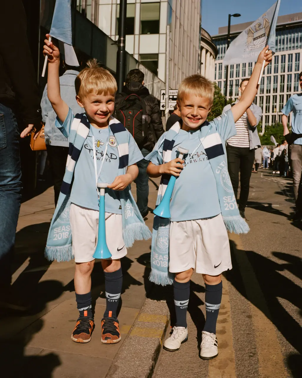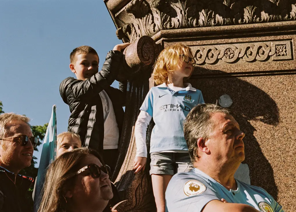 Disciples pilgrimed from Wythenshawe, Chorlton, Oldham, Trafford, Stockport and Bolton, with a few stragglers from Cheshire also showing face. Donning sky blue football shirts and waving yellow banana inflatables, excitable children and impassioned adults went into a frenzy as the team rode past on an open top bus.