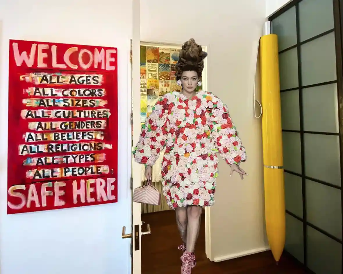 According to her caption, supermodel and mother-to-be Gigi Hadid finally finished designing her “dream spot” in New York City before she retreated to her family’s farm in Pennsylvania – the setting for a recent Vogue shoot. She thanked architecture firm Gordon Kahn, a handful of her favourite creatives and her mother, Yolanda – designer of tiny painted canvases and enormous glass refrigerators – for helping realise this passion project. The result was entirely Gigi – but not in the way we might’ve imagined.