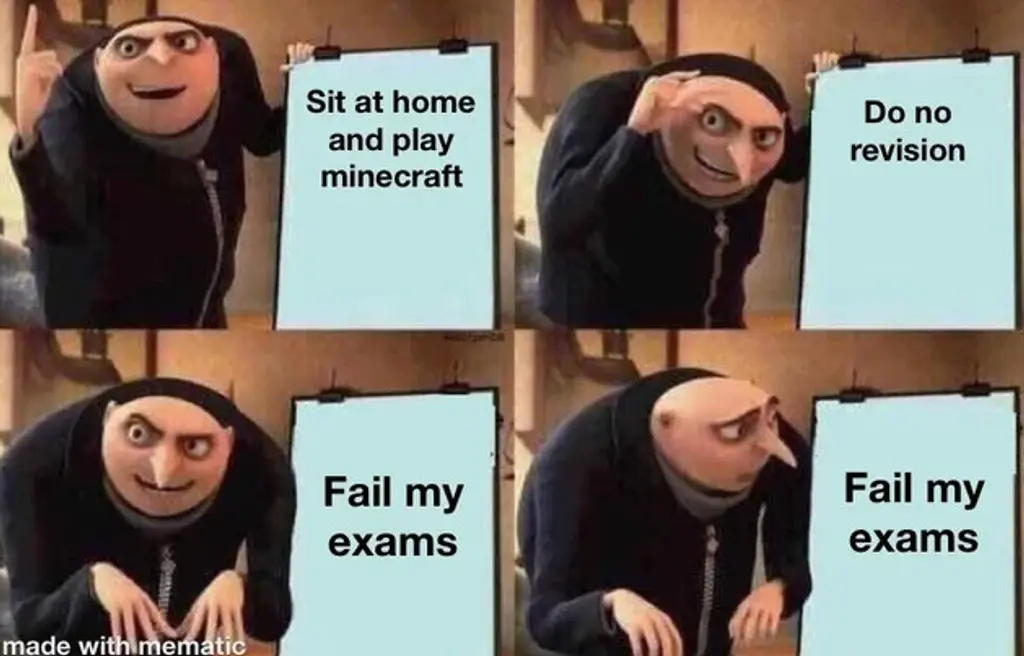 The Minecraft comeback meme because I’m playing too much and not revising.