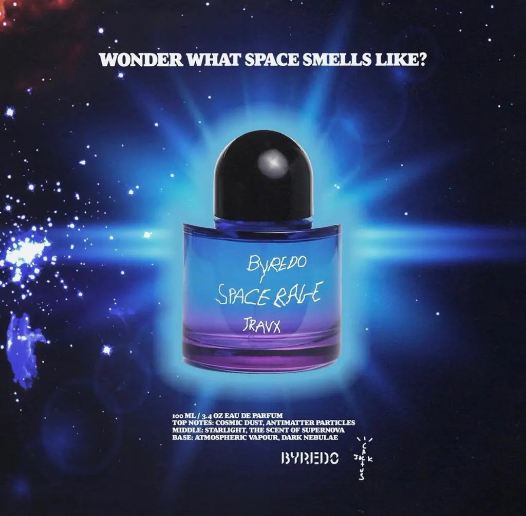 “Wonder what space smells like?” asks a recent advertisement for Space Rage x Cactus Jack, a collaboration between boutique fragrance house Byredo and THE FACE cover star, Travis Scott.