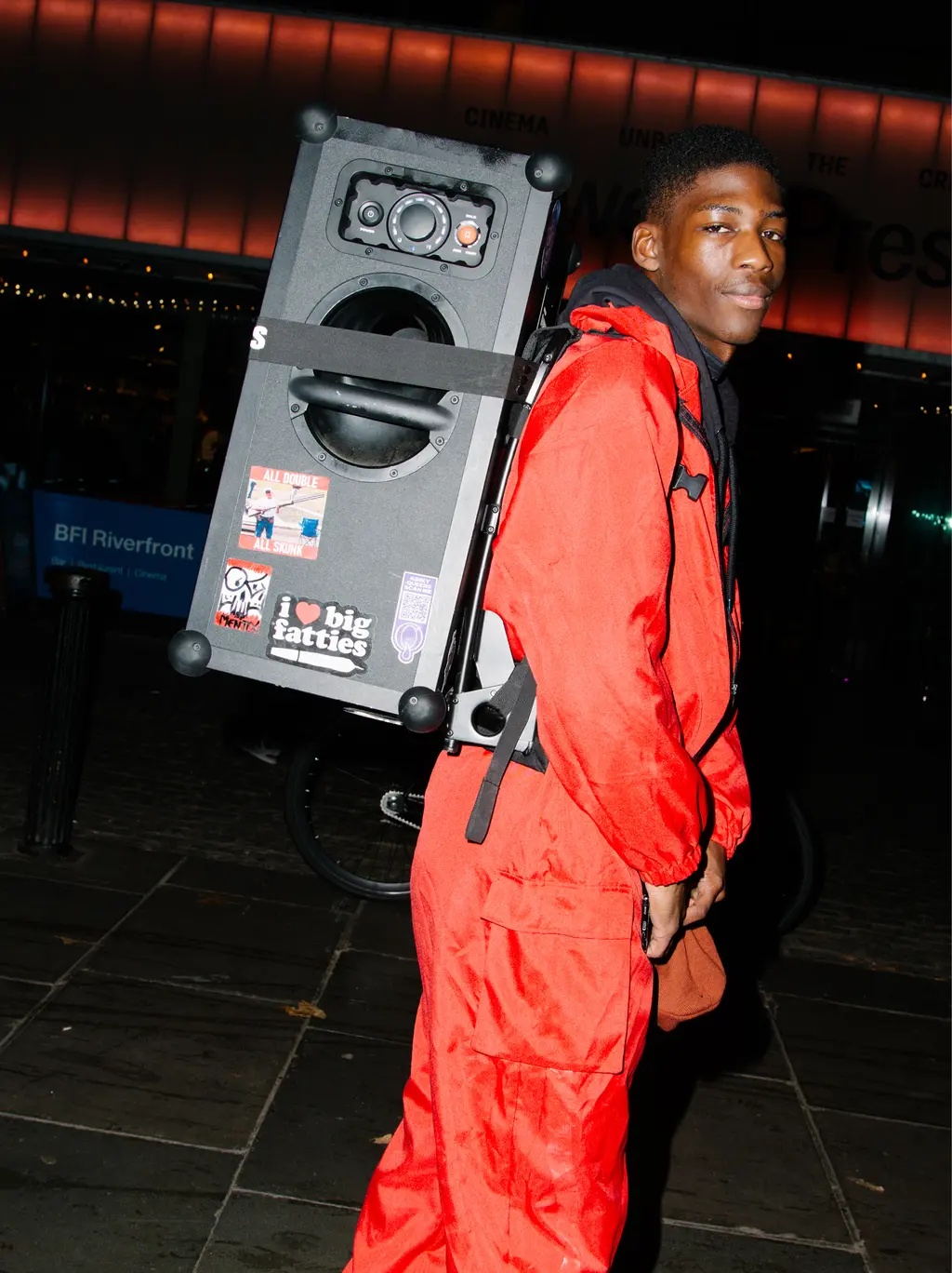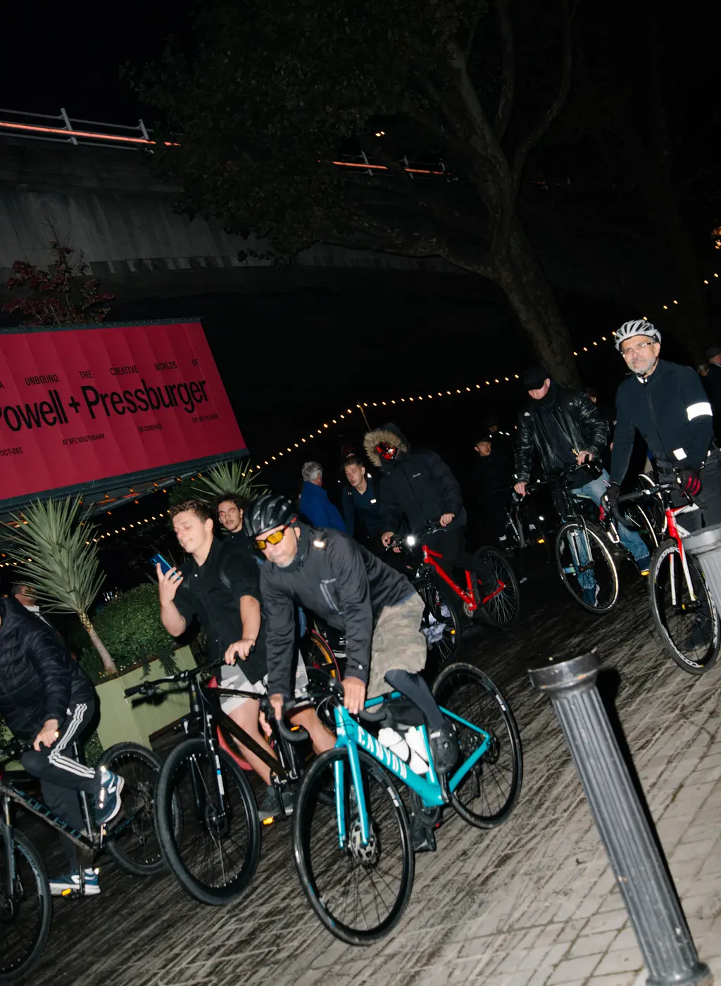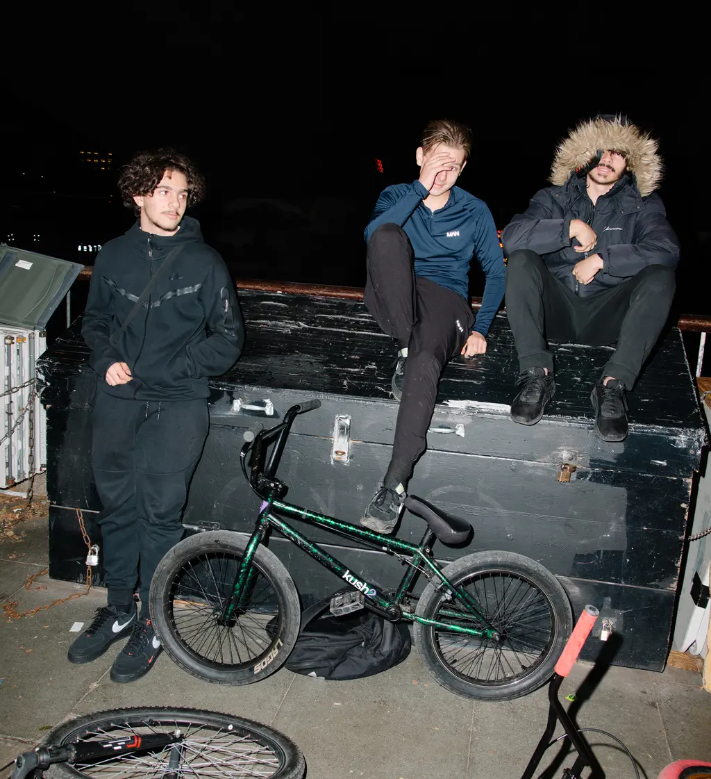 Critical Mass is a leaderless cavalcade of fixies, Choppers, Bromptons, scooters, roadsters, racers and off-duty Deliveroo riders. Founded in San Francisco in 1992 and now spanning 300 cities, the group meets on the last Friday of every month to draw attention to the ever-present dangers of cycling, providing safety in numbers to skirt traffic, pop wheelies and celebrate a central article of faith: two wheels good. Whether the pedallers in this punky peloton are there for a bit of anarchy, the environmental message or just a love of bikes, their involvement has created a thriving, whirring subculture that feels like family. Critical Mass go hard and fast, together, as London Massers – assembled for their October night-time ride-out – confirmed to THE FACE before their grand départ from under Waterloo Bridge.