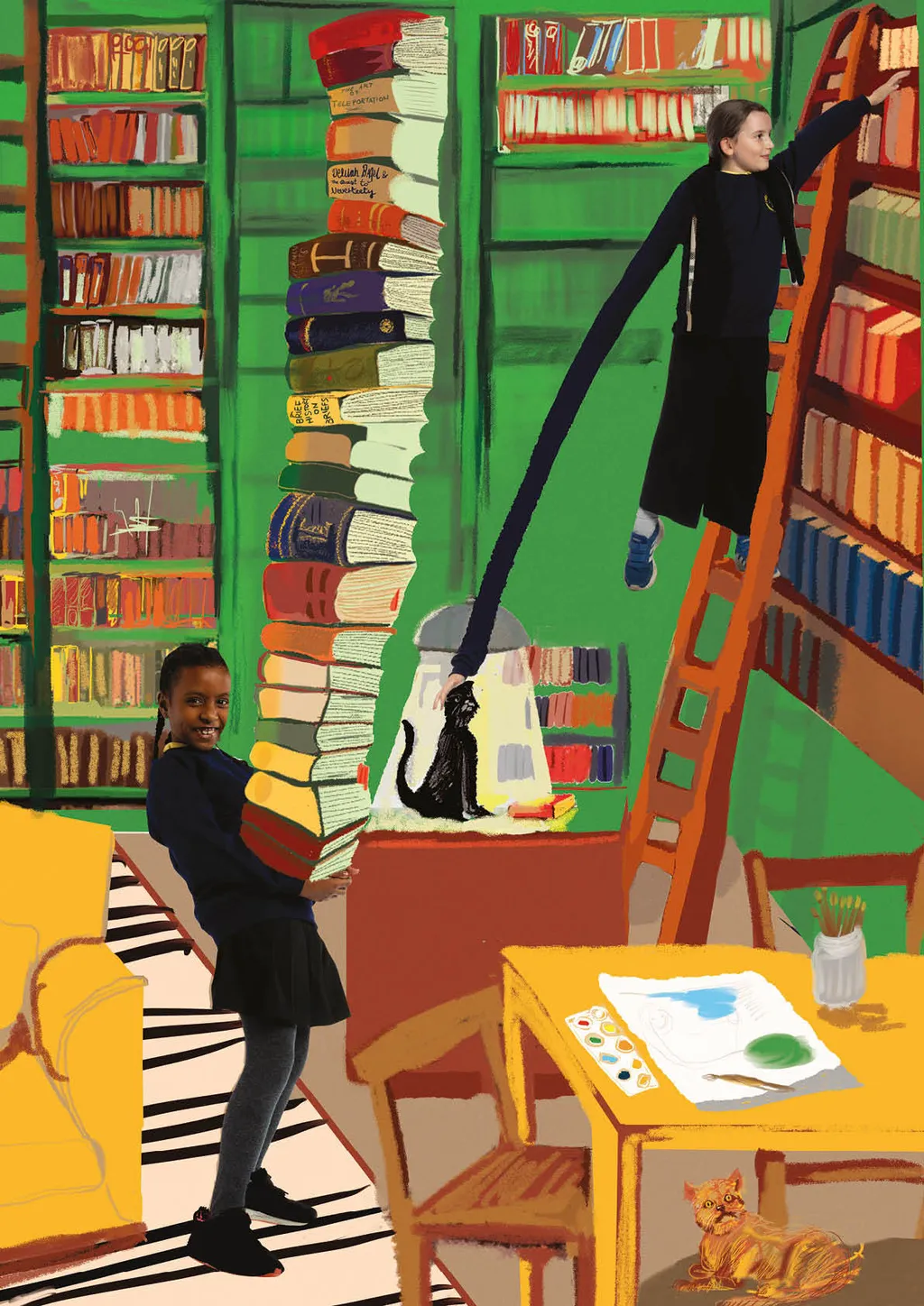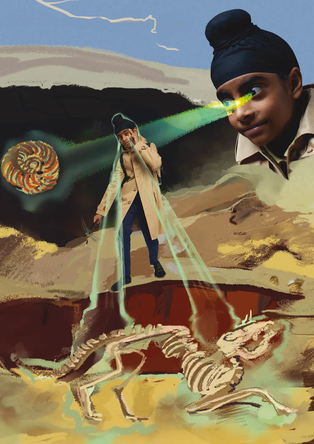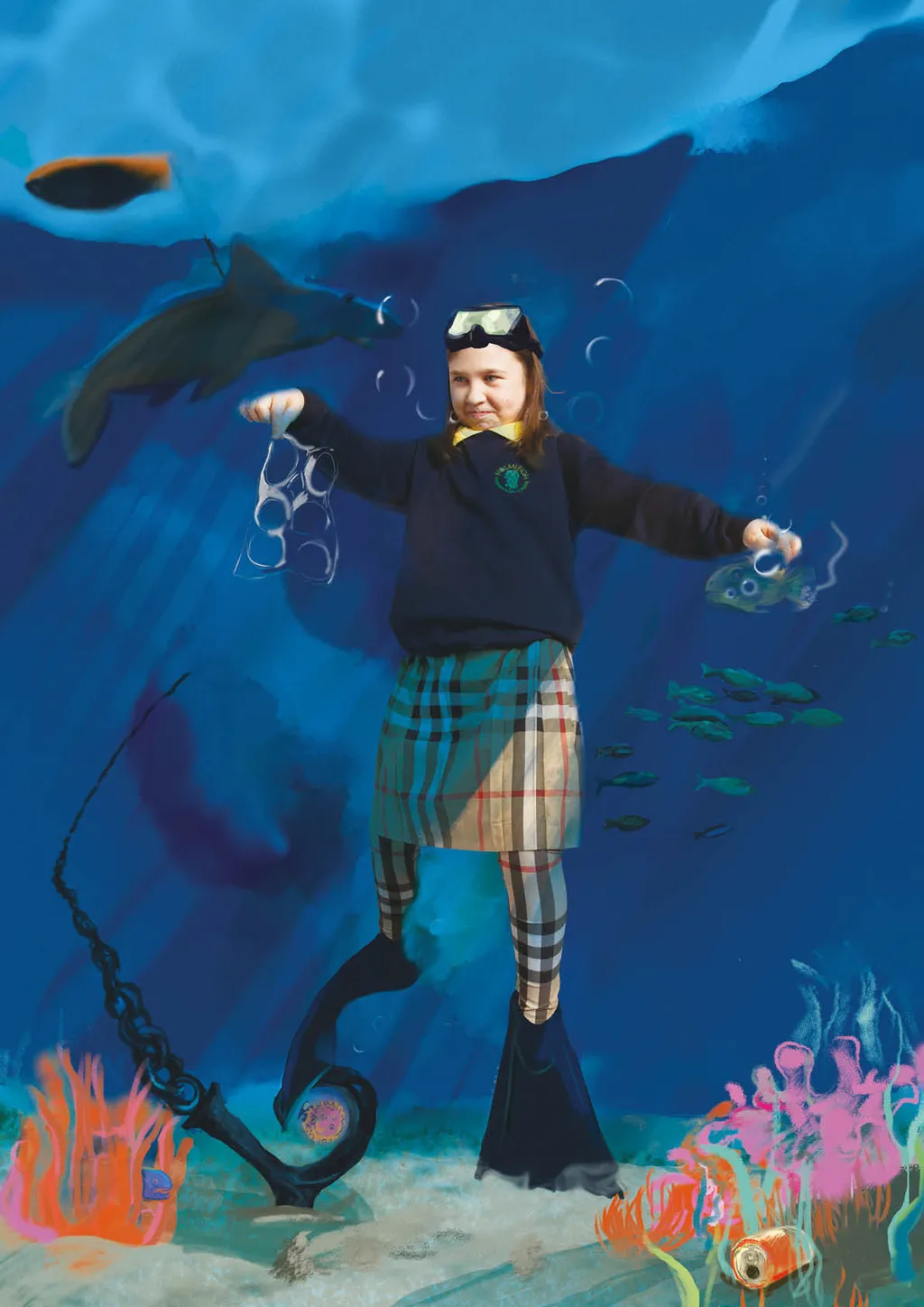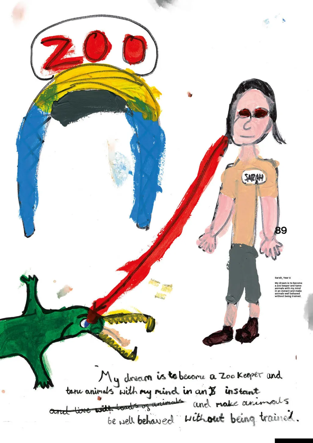 Portraiture and digital illustration bring these fantasies into vivid and often amusing reality. In one, Nathan from Year 6 imagines himself as a shapeshifter, able to transform into animals with superpowers, whilst another shows Year 3’s Muna as a doctor whose surgery doubles as a well-stocked sweet shop. Sign us up, Muna.