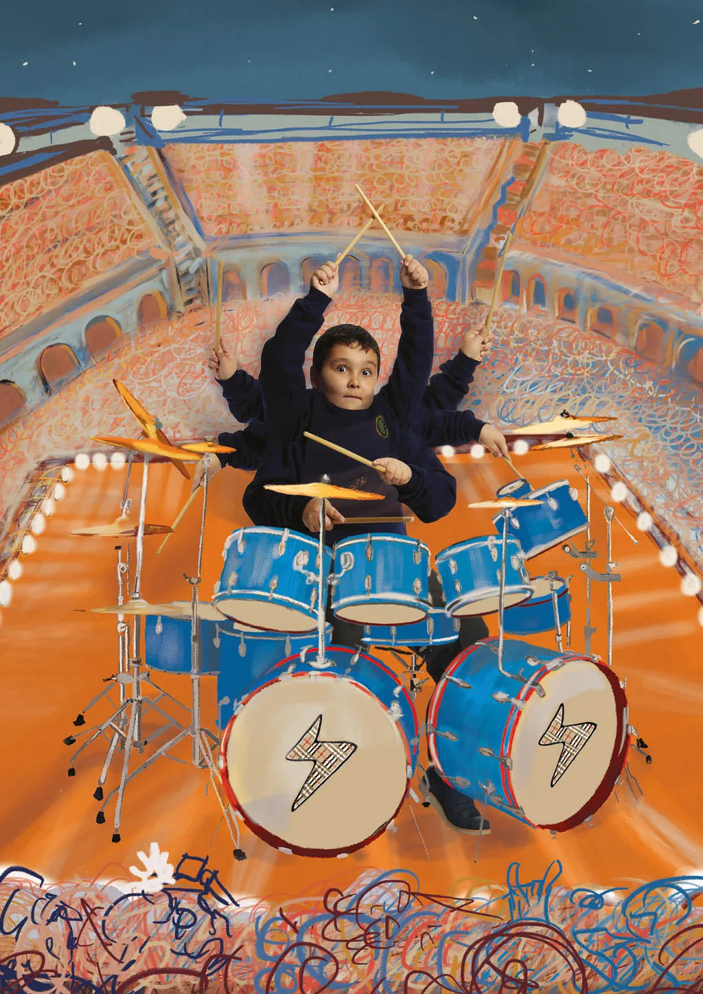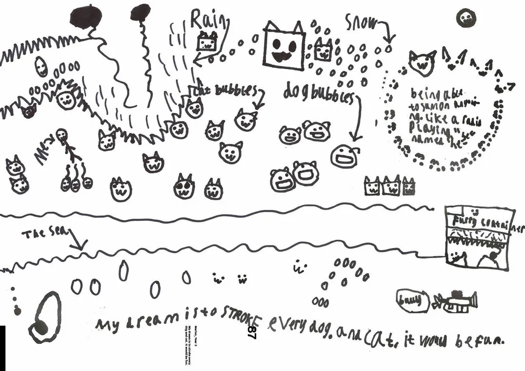 Entitled Dreamscapes, the pages of the A2 zine-cum-poster-book are bursting with the colourful imaginings of pupils at a primary school in North London, who have benefited directly from Rashford’s scheme in partnership with the National Literacy Trust. During a workshop delivered by Williams, children from Years 3 and 6 were encouraged to let their imaginations run wild as they shared their big hopes and even bigger aspirations for the future. “I wanted to take the pressure off,” Williams tells THE FACE, “so I made sure to tell them that they could depict absolutely anything they wanted. They got really into it!”