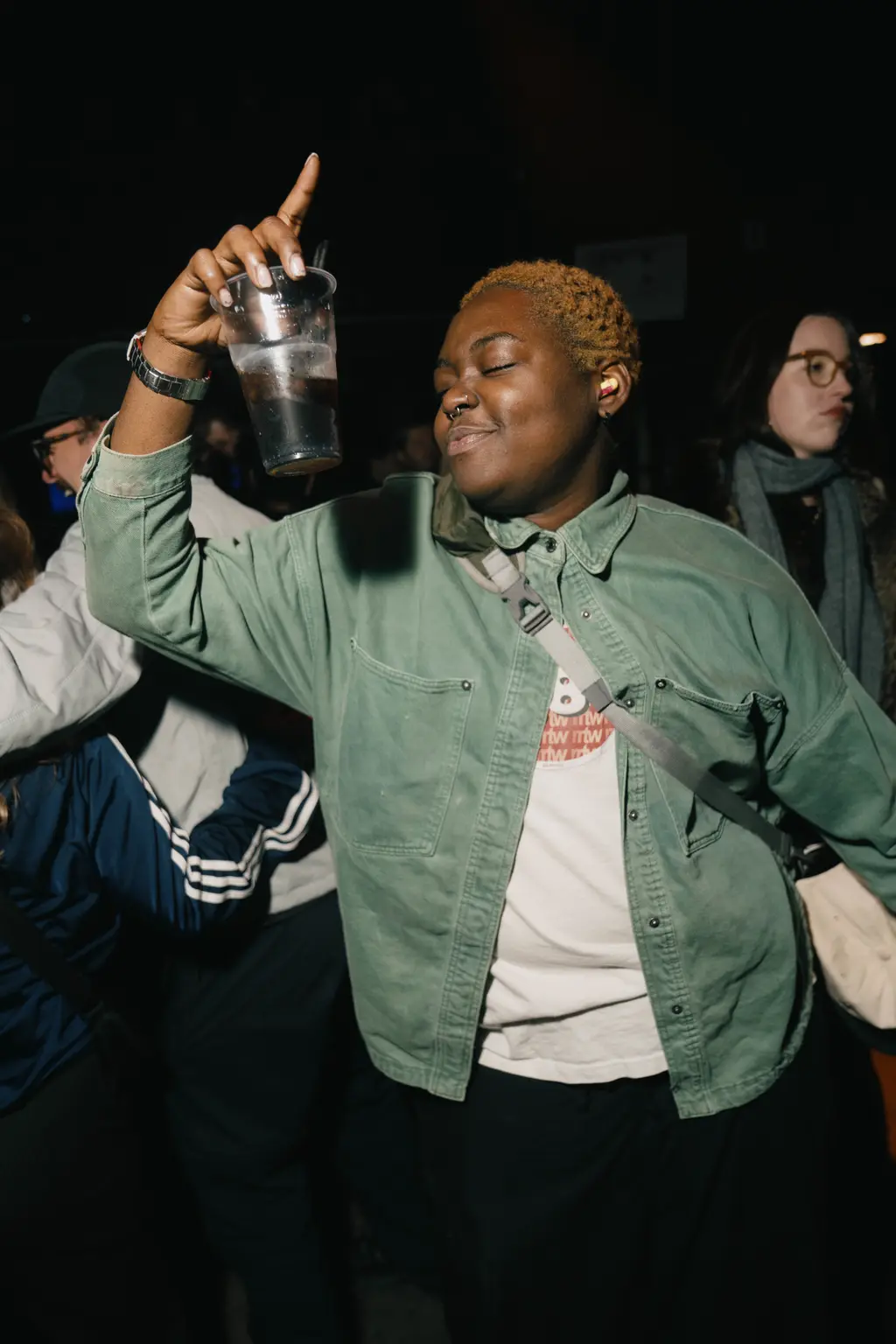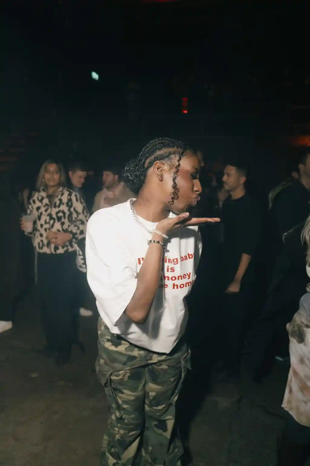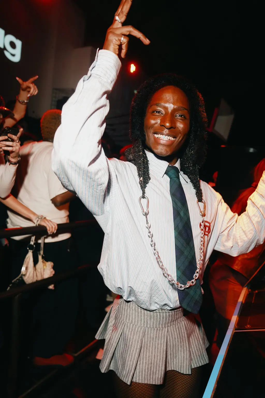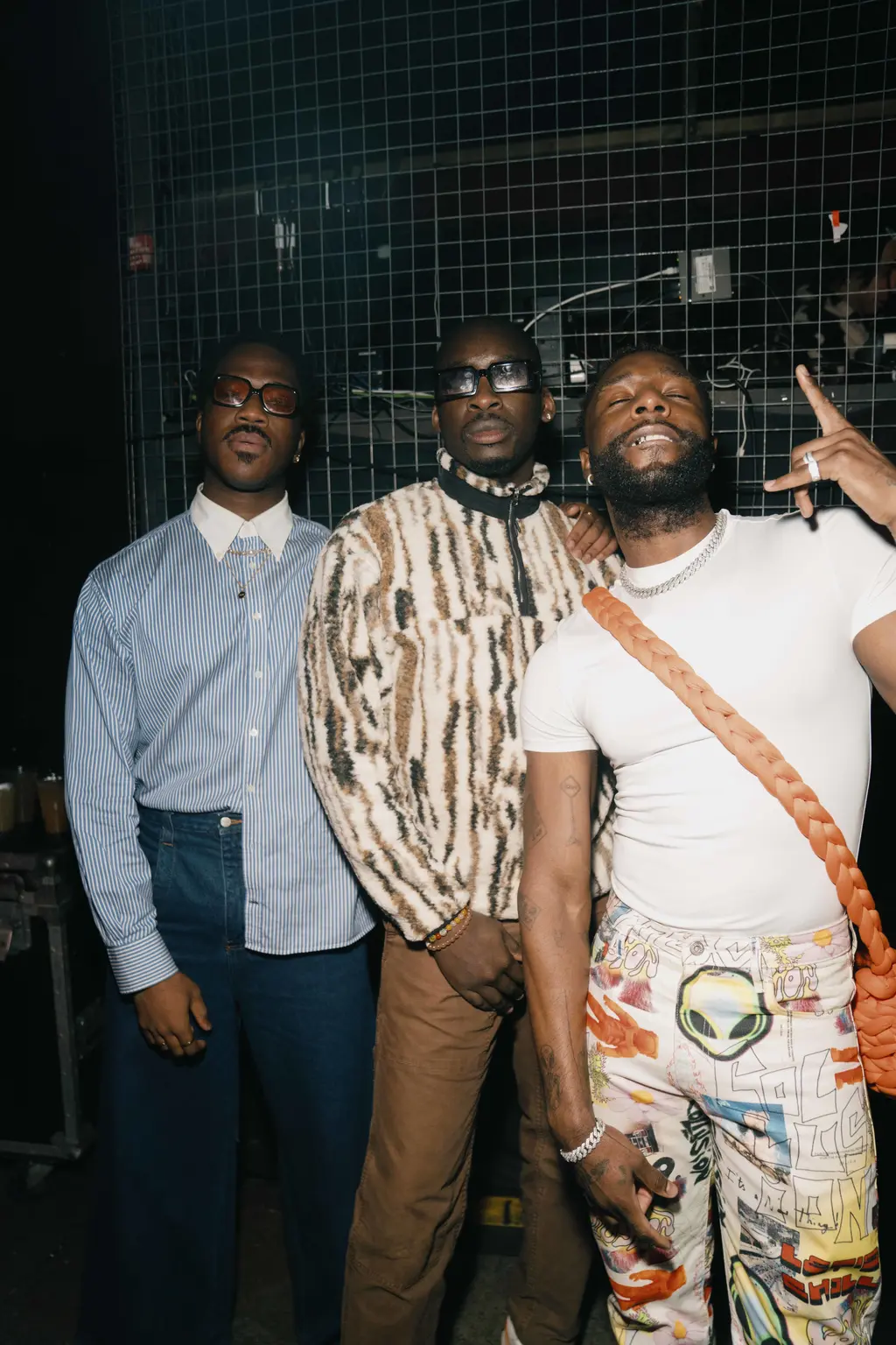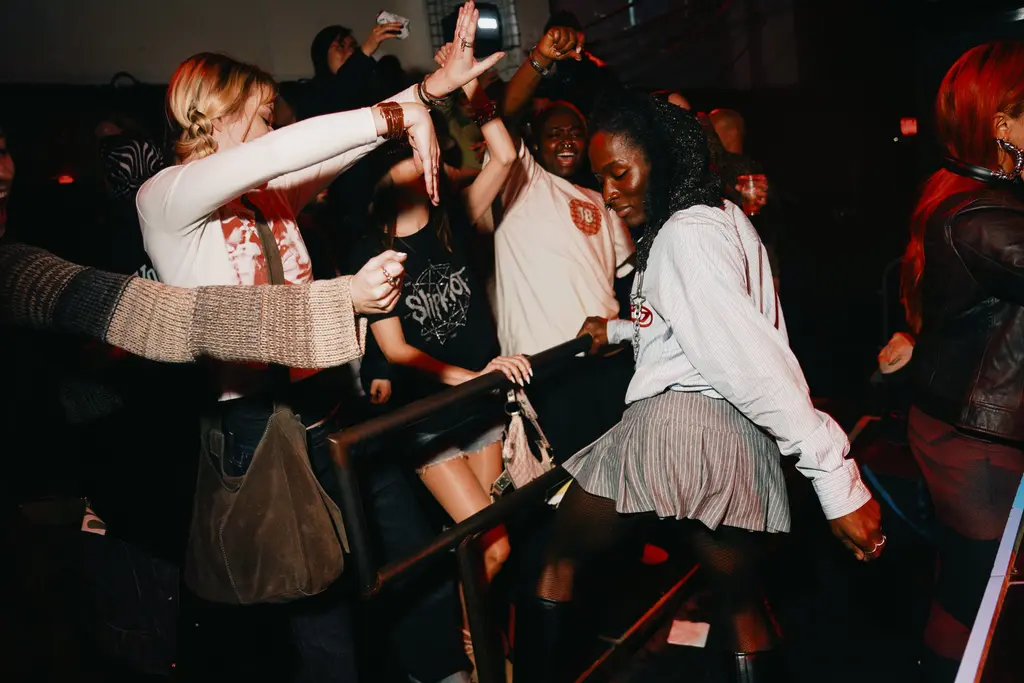 After stuffing all manner of puffy outerwear into lockers, attendees dove straight into action, turning the building into a sea of wrought worker staples, from baggy button-downs and box-cut bomber jackets and double-kneed cargos. Leo Mandella, known to many as menswear savant Gully Guy Leo, led the night’s sonic charge in a louche, green jacket and ASOS Design vest combo. As he handed the reins over to PXSSY PALACE’s Nadine Noor and Ryan Lovell, he couldn’t resist one last reload – a break-heavy edit of Sister Nancy’s Bam Bam – flashing a smile as the crowd lurched into a frenzy.