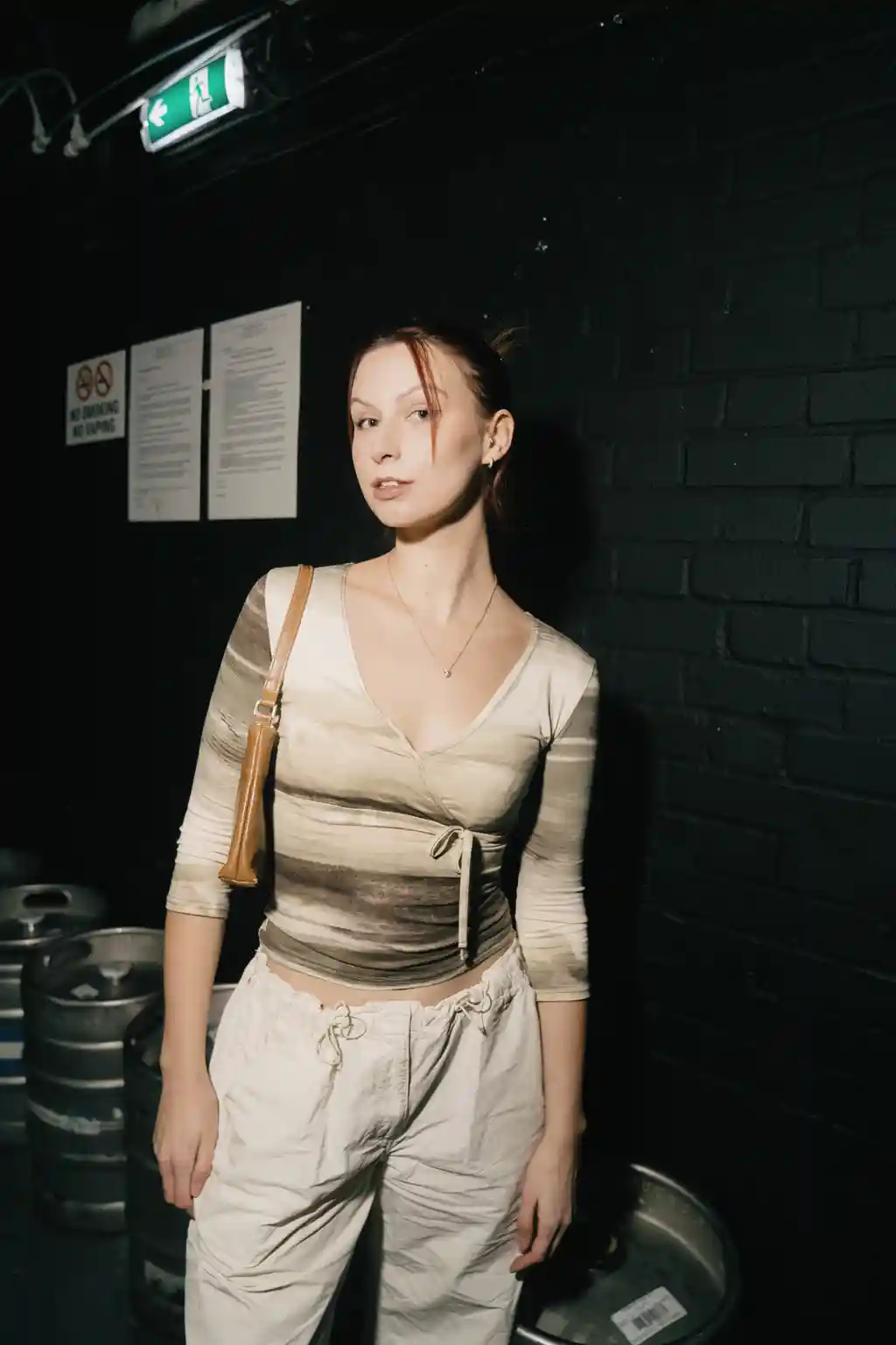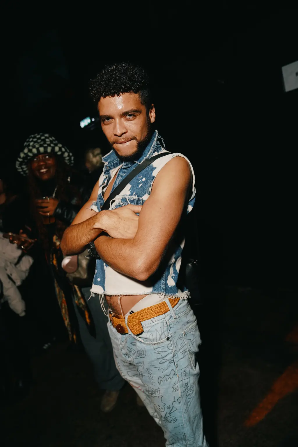 Cosying up on the balconies that flanked the function, onlookers like it-girls Bell Madu and Aly Meghani gazed into a crowd of loving embraces and frolicking ravers. Amidst flailing gun fingers and the occasional clawed heart, sim0ne broke away from some heavy spinning to spud a fan over the decks – a sign that her selection of hardcore classics were going down a treat. At this point, some dancers had ditched their clothes entirely (holding onto a pair of carpenter jeans at most), while others still delighting in the night’s code of refined industrial dress unbuttoned their oversized trucker jackets and loose, corded shirts in search of a breeze.
