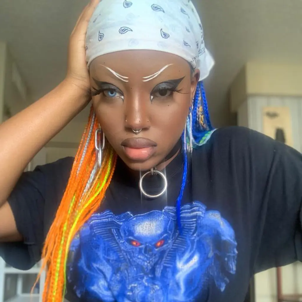 Each time I’ve noted how much things have changed, it’s been because of an internet video. First was when I stumbled across a clip of a Nigerian traditional wedding with a goth spin where the attendees all wore purple and black native and moshed out to Toxicity by System of a Down. The second was this year, watching the viral Tik Tok “Don’t Rush Challenge” video featuring alternative black girls, that Kirby says made her “weep with joy”. A number of black women – e‑girls, goths, punks – recorded their own take on the trend, showcasing their wide-ranging looks and replacing the song Don’t Rush by Young T & Bugsey featuring Headie One (which had featured in most other videos) with Duality by Slipknot.