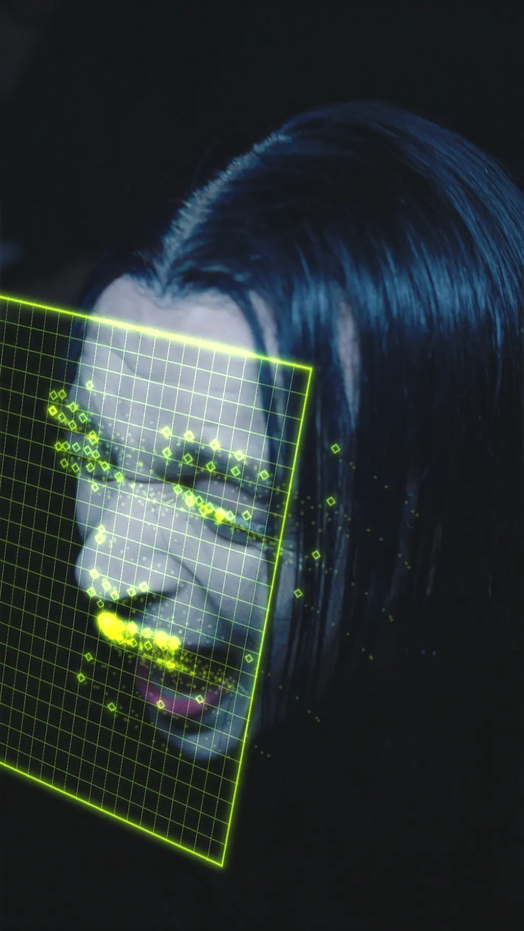 When I was approached by Ben, he already had a pretty clear vision and concept for the filters. The key point is their dystopian vibe with references to surveillance and face tracking technologies. These concepts are important to my work as well, so we took it from there. Then it was a back and forth between finding the right look, seeing how it works on the test footage and adjusting the filters accordingly. The filters themselves were applied in post-production – the video was shot without them!