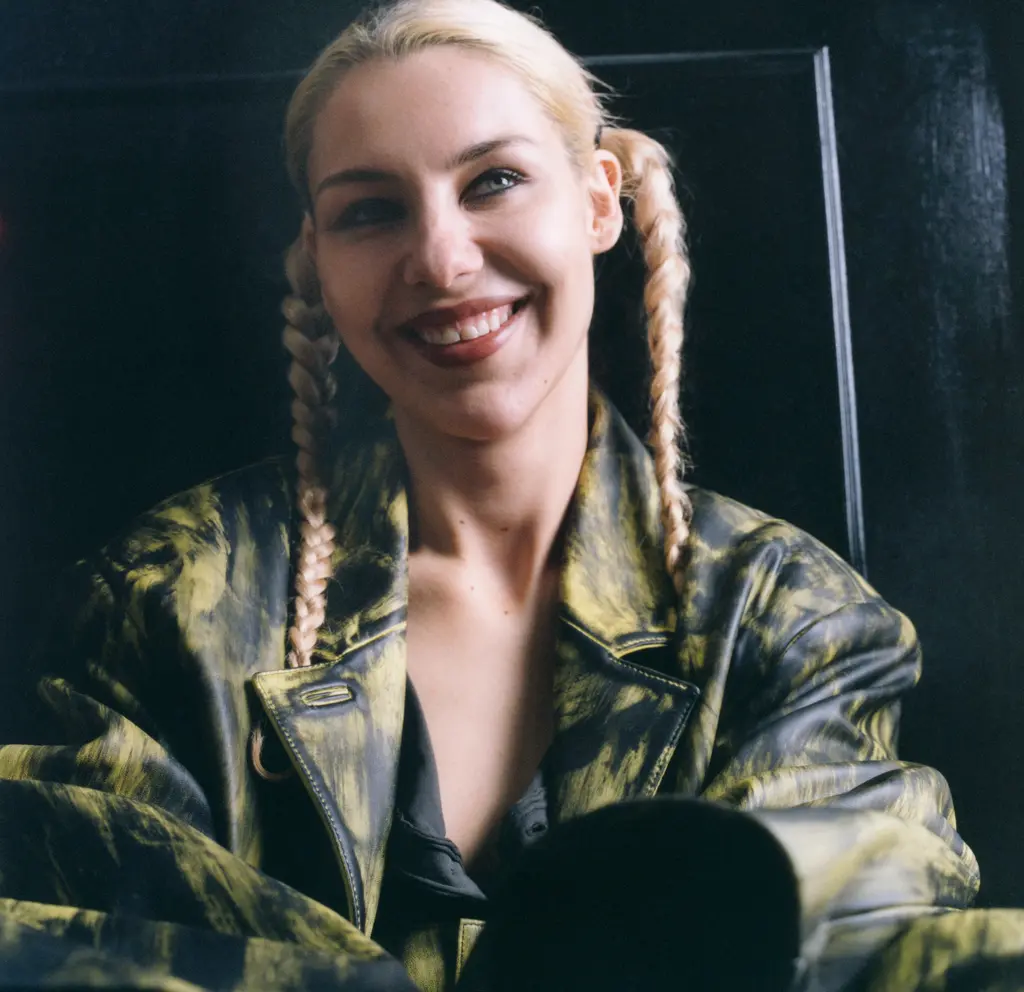 We’re sat on a squidgy brown sofa, balancing laptops and poké bowls on our knees. Two little dogs with BDE – Maja’s King Charles spaniel, Mauro, and THE FACE Fashion Editor’s toy poodle, Roman – play turf wars, scuttling and yapping around the studio. Maja uses stiletto nails dotted in lava lamp gloops to pick up radishes that never quite make it to her mouth. There’s just too much to talk about, as I find out when I suggest that the new path Maja has chosen must be mildly terrifying.