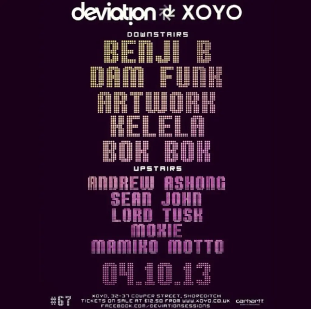 Let’s take July 2014 as an example. Benji, Kaseem Mosse, Travis Scott, Virgil Abloh and Mark Ronson all featured on the Deviation bill at east London institution, XOYO. Crossing musical boundaries, each lineup is curated with precision, booking artists from the “leftfield of dance culture”.