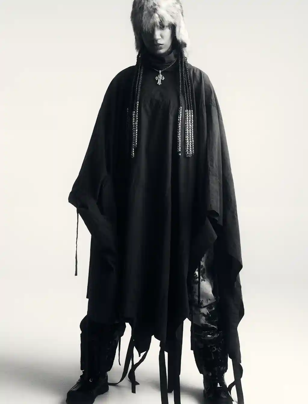BKTHERULA wears jacket archive RAF SIMONS courtesy of ARTIFACT, trousers LUU DAN, boots UGG, hat archive BLESS courtesy of ARTIFACT and jewellery (worn throughout) talent’s own