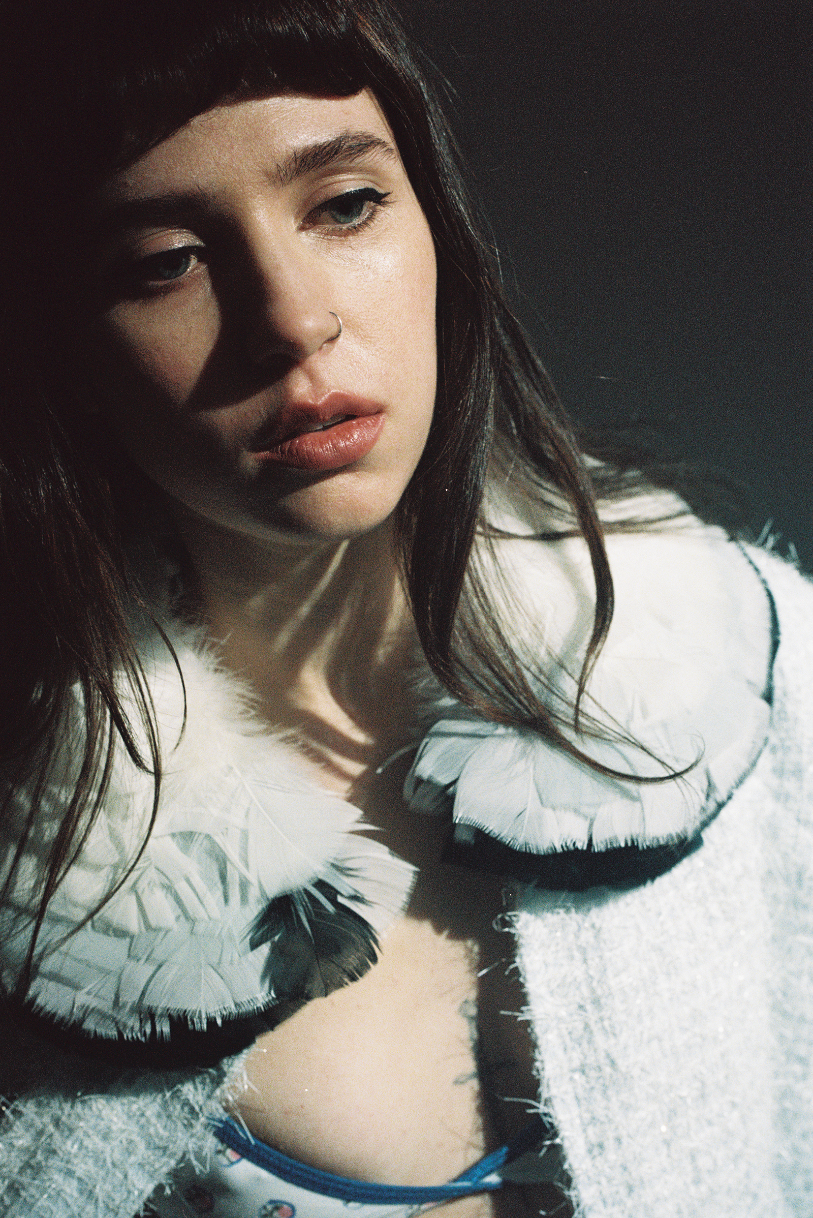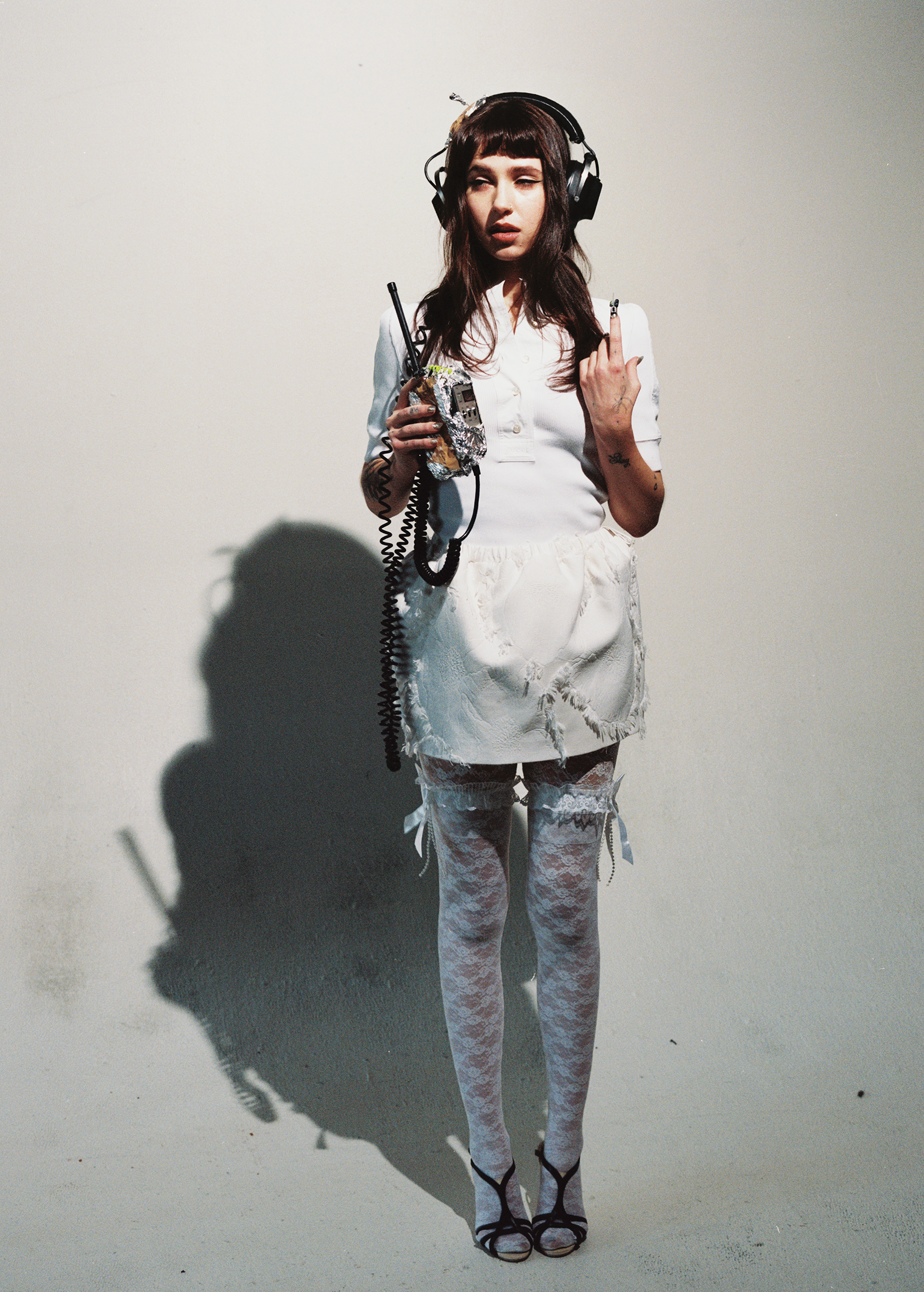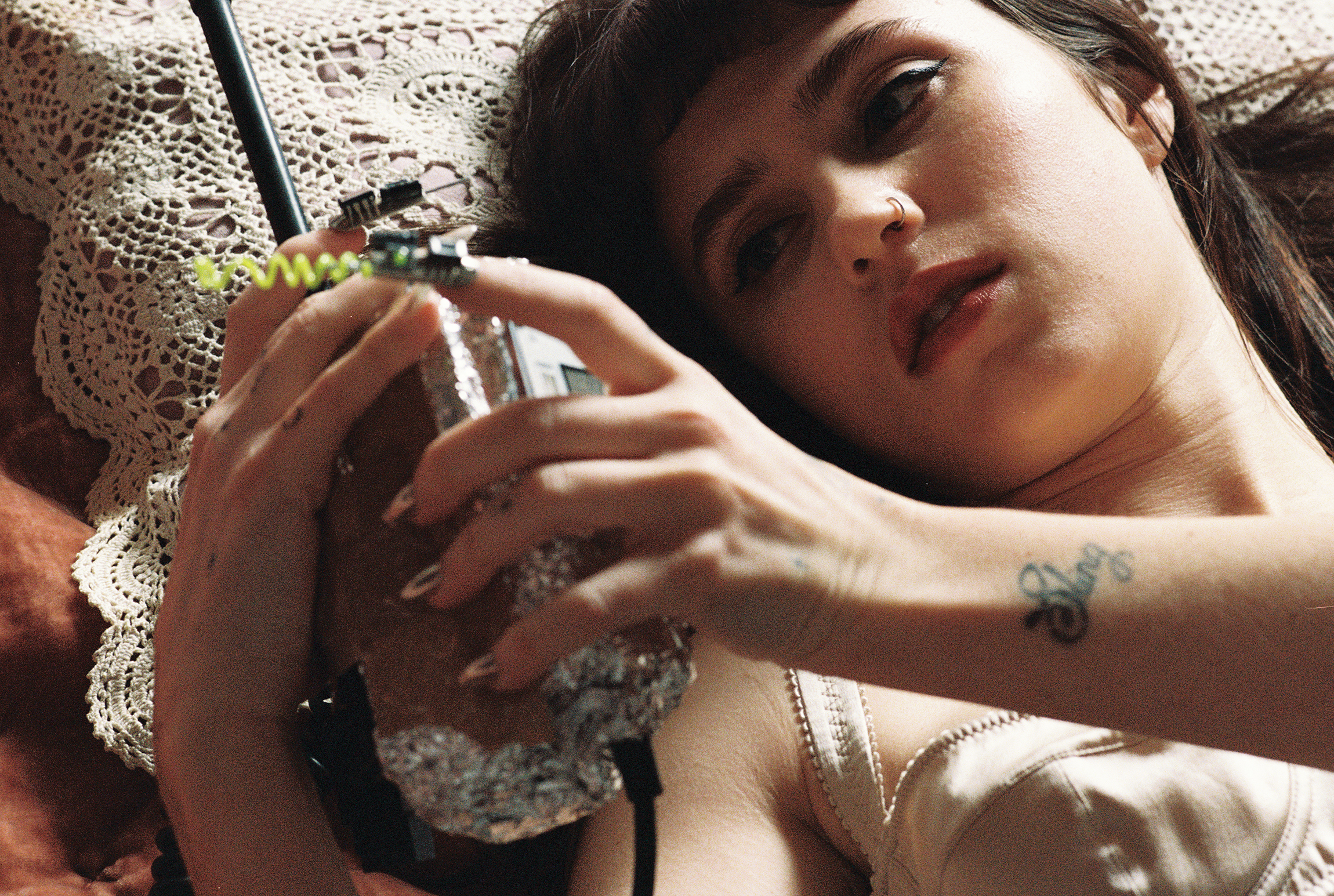 Clairo wears dress SIMONE ROCHA and bra archive MIU MIU courtesy of NINETWOFIVE
