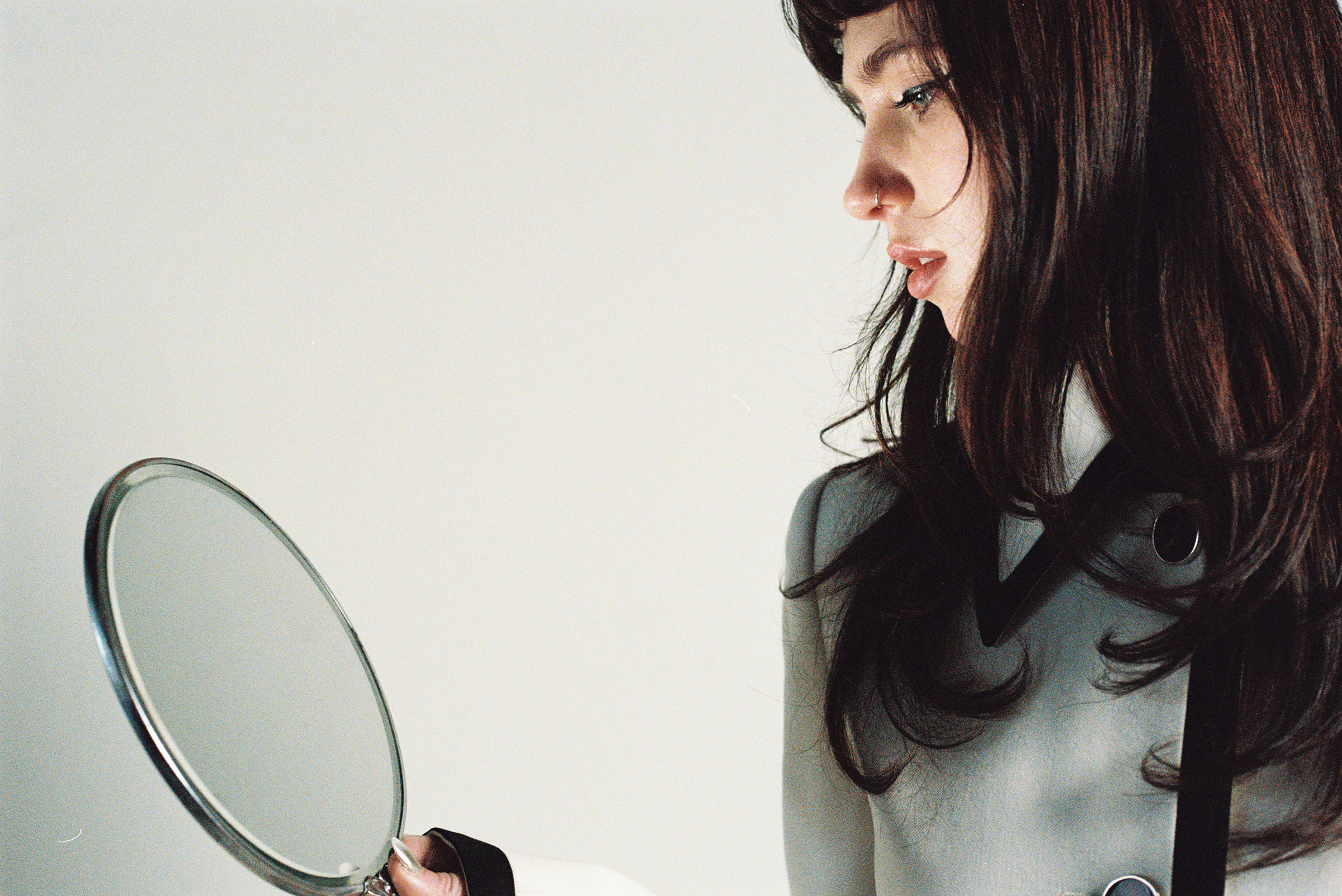 “Growing and morphing and changing is so natural, so much a part of growing up. And so it’s been really cool to – over the course of time – be slowly finding myself, becoming very aware of the things that are sticking. Charm was a really good example of something that stuck with me.” She hits the Juul, and her eyes light up again. “I’m really happy about it.”