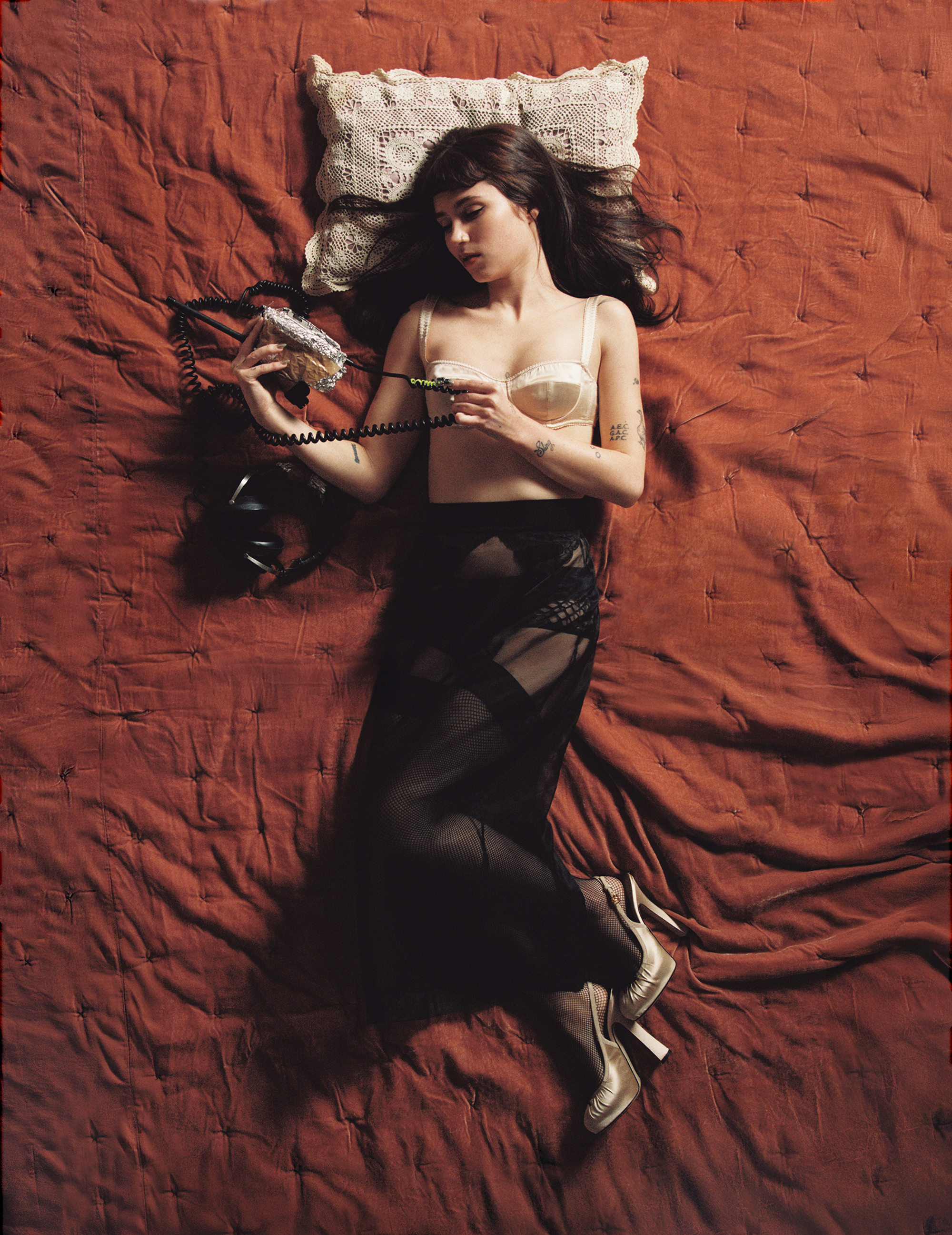 Bra, skirt and shoes DOLCE & GABBANA and underwear and stockings stylist’s own