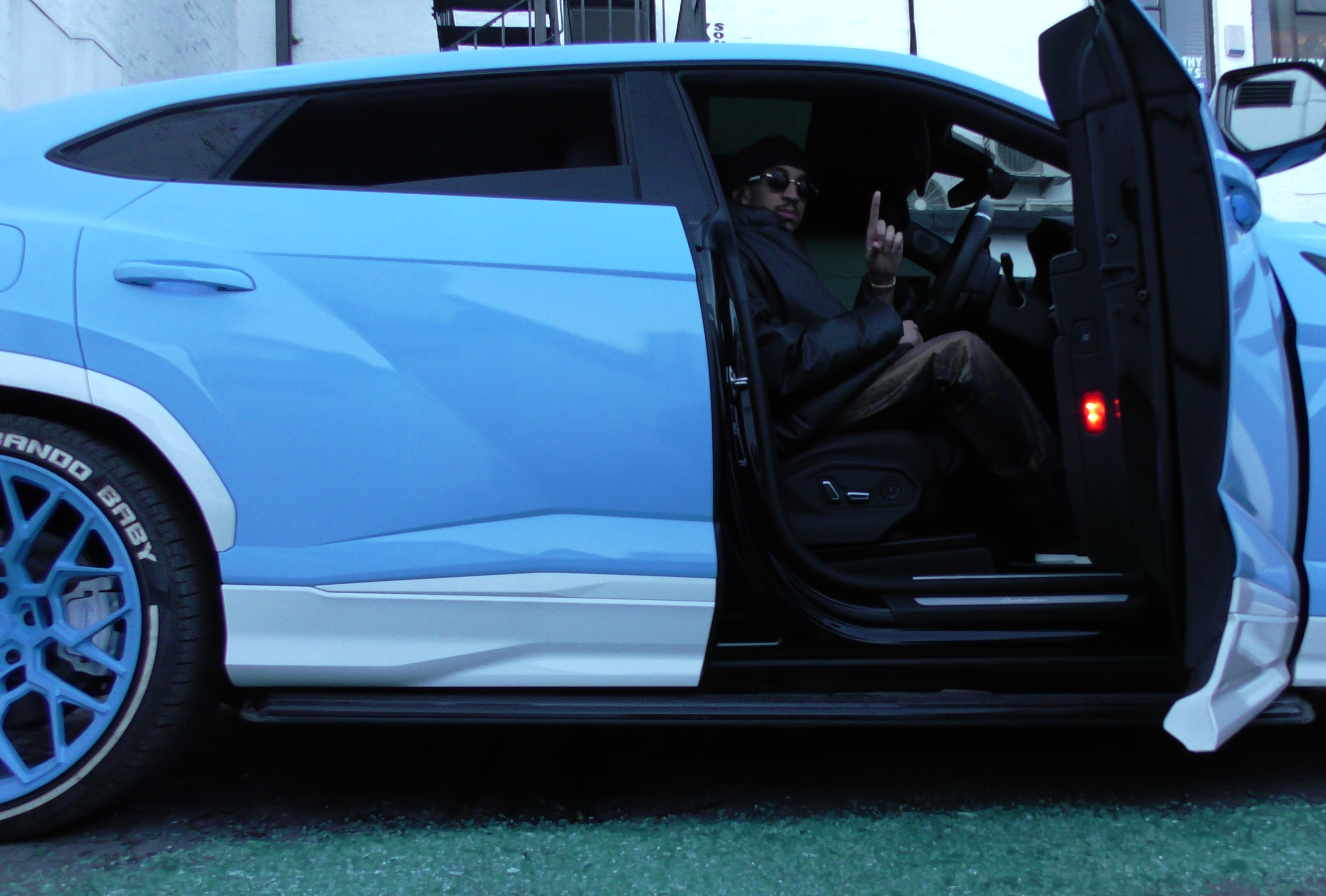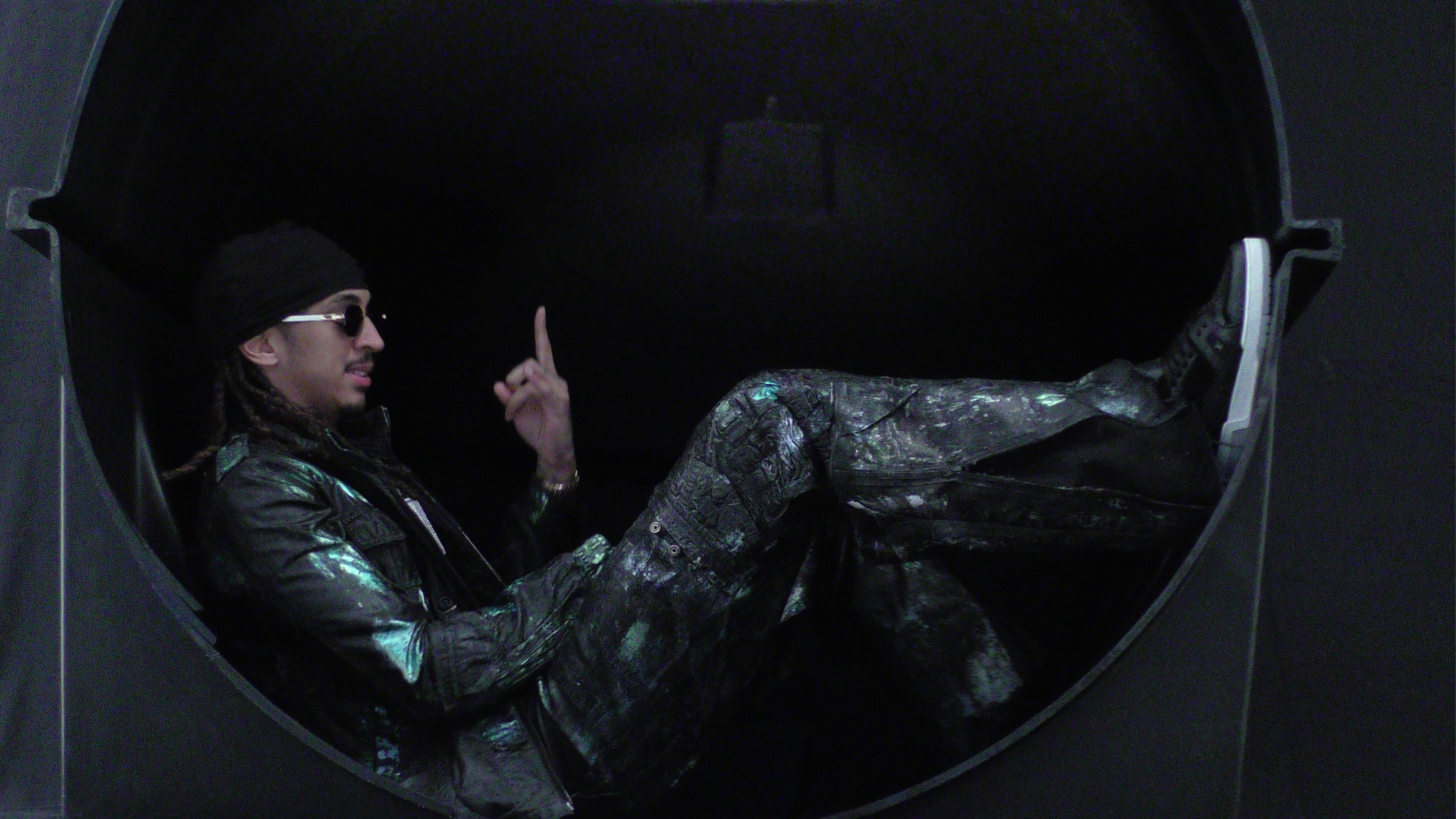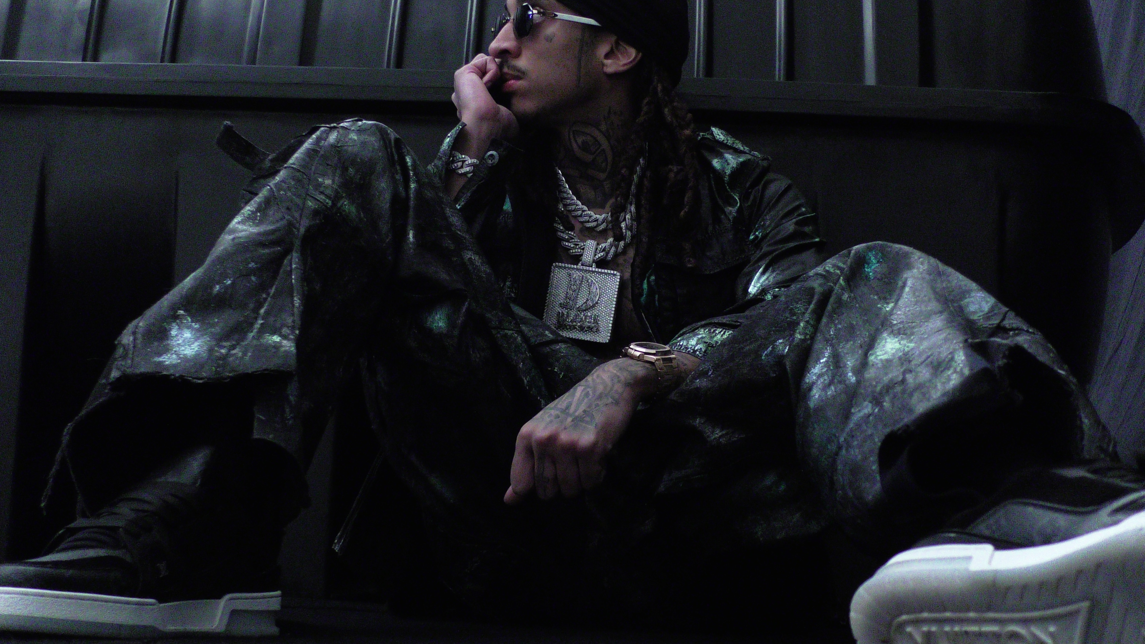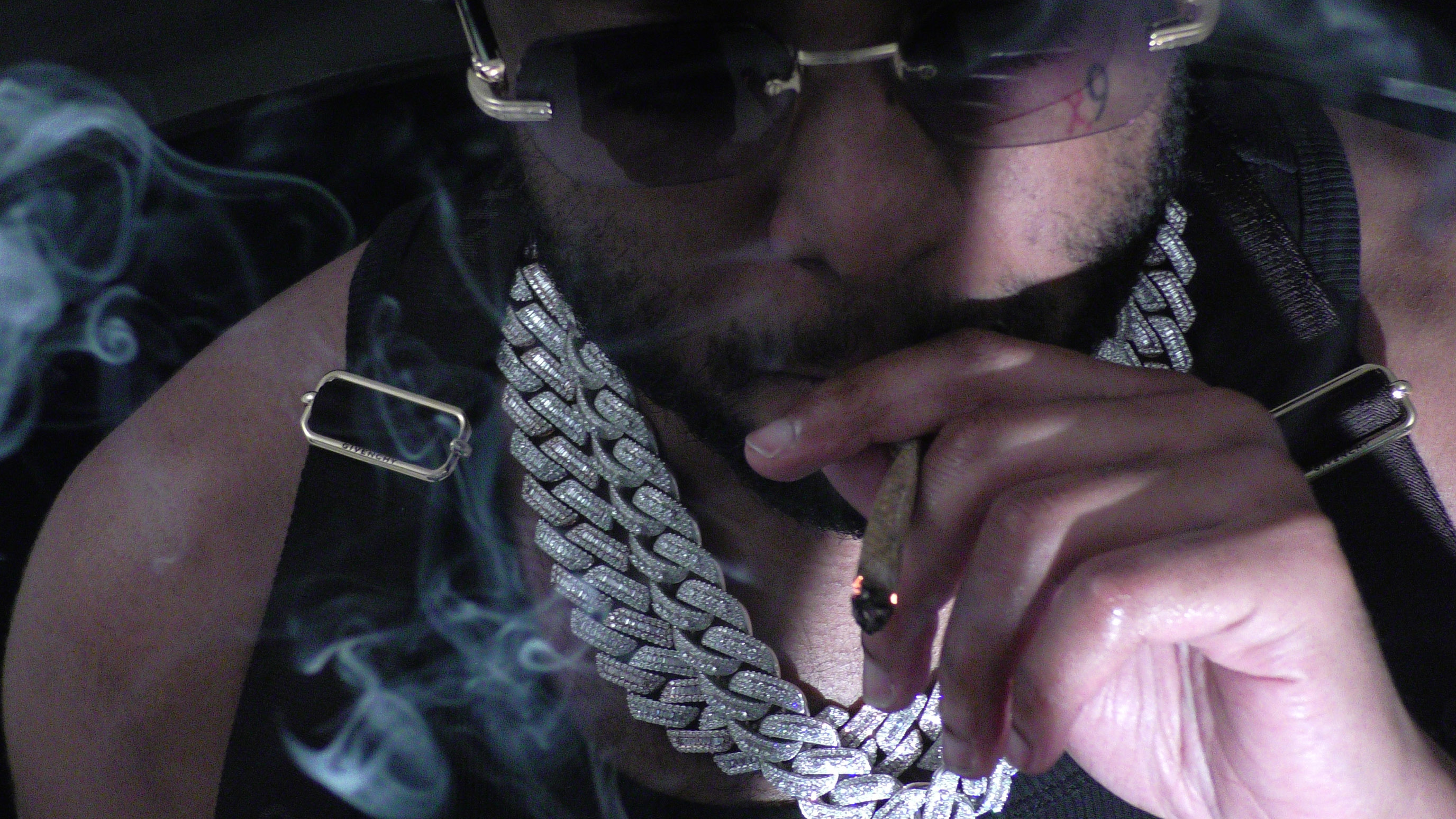 Young Adz wears jacket YEEZY GAP and hat, sunglasses and watch talent’s own