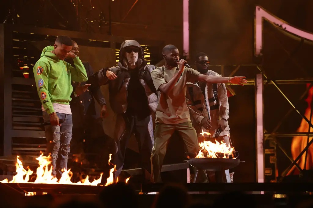 At last night’s awards ceremony at London’s O2, the pair once again pulled out all the stops for Dave’s climactic performance of In The Fire. In case you missed it: after scooping the award for Best Hip Hop/Grime/Rap Act, Dave quite literally set the arena on fire, bringing out Giggs, Ghetts, Meekz and Fredo for the most memorable BRITs performance since, well, Dave’s last BRITs performances. There was a full choir, intricate set pieces and lots of flames coming out of Dave’s guitar.