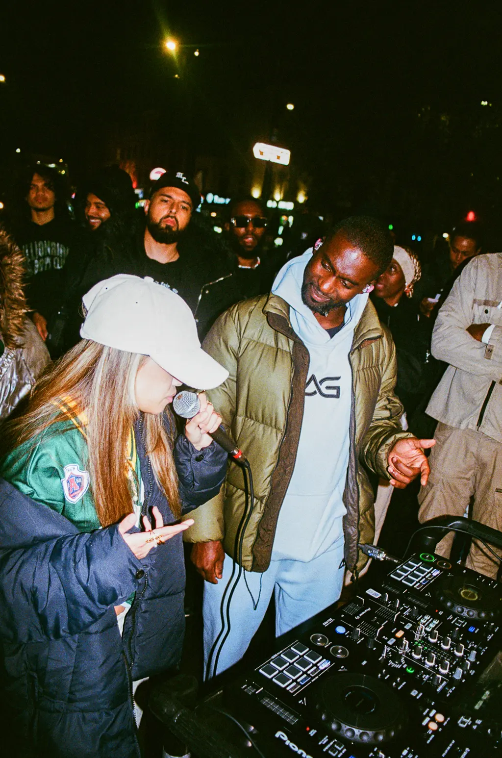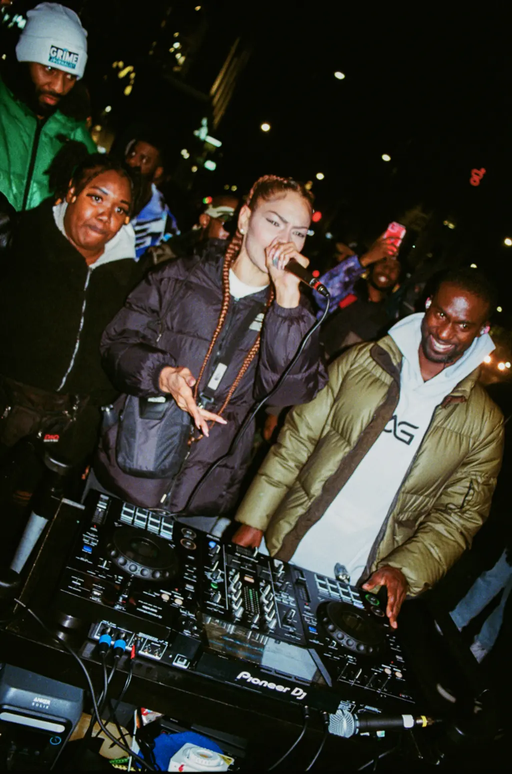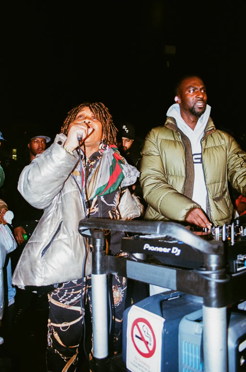 [My friend] Chris Cargill said to me, “You should get guests on.” I’m like, nah, man, like, I’m outside, I’m already dealing with the drunks, people that are on substance. People dashing eggs at me, dashing water at me, touching my decks. I’m like, I can’t deal with all of that and then deal with artists. So I kind of pooh-poohed it for a little while and then some randomer came up to me and was like, “Oh, do you mind if I MC?” So I’m like, alright, cool man. Then [after that] I think the biggest moment would have probably been Daddy Freddy in Brixton a few months ago. When that happened, that’s when I actually [thought] there’s something in here in terms of serving the people. This is someone that no one’s seen for ages. I was like, okay, how can I use the platform to help other people that just need a bit of exposure?