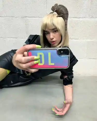 Right now, make-up free, sleepy-voiced and barefoot next to the pool in her Beverly Hills Airbnb (even stars are skipping hotels these days), she looks her young age, complete with a sprinkling of delicate tattoos and lethal lime-green acrylic nails.