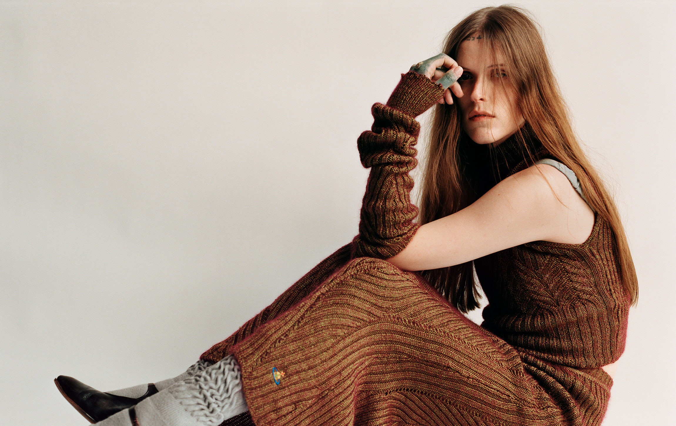 Top and skirt VIVIENNE WESTWOOD, shoes courtesy of National Theatre Costume and Props Hire and socks stylist’s own