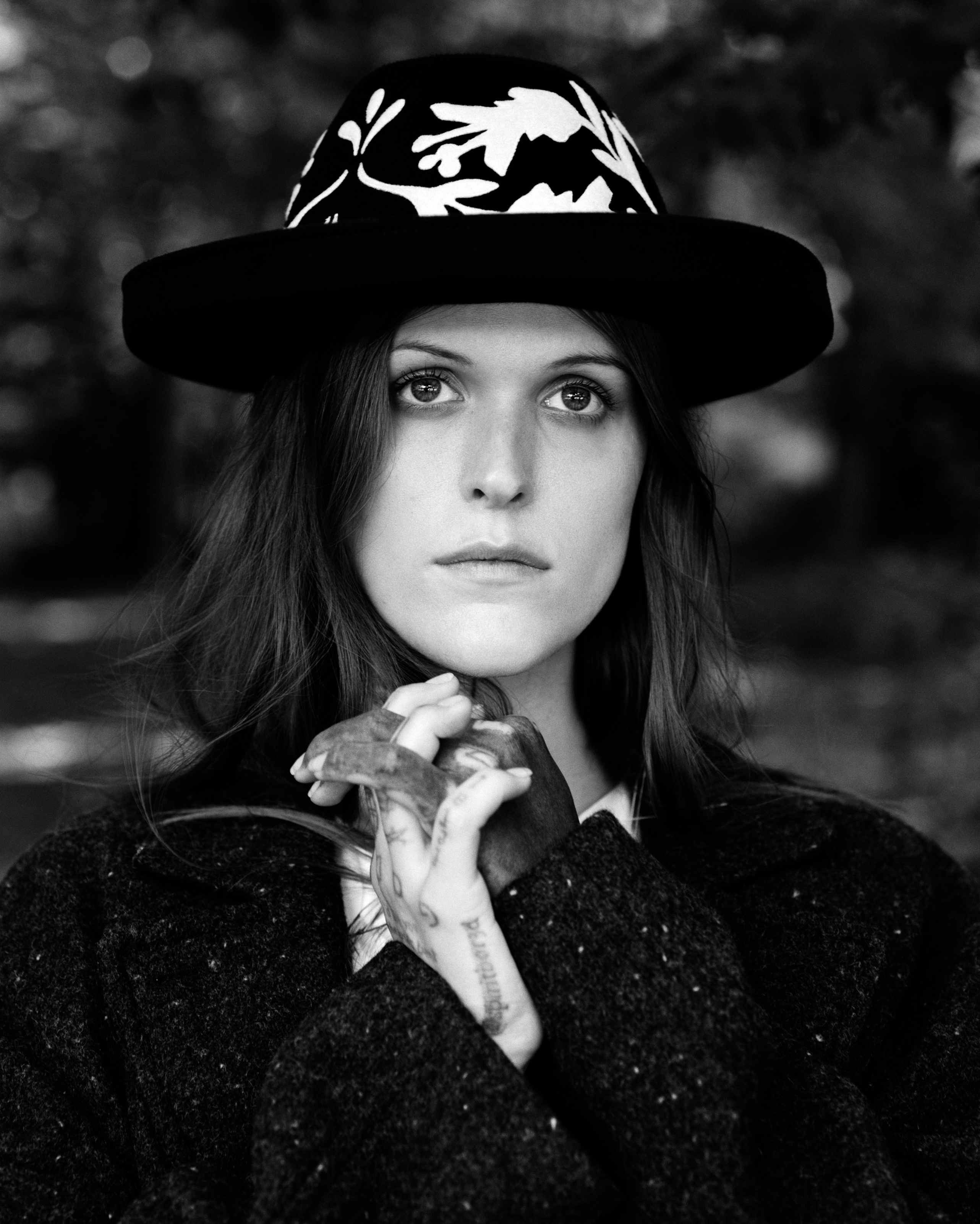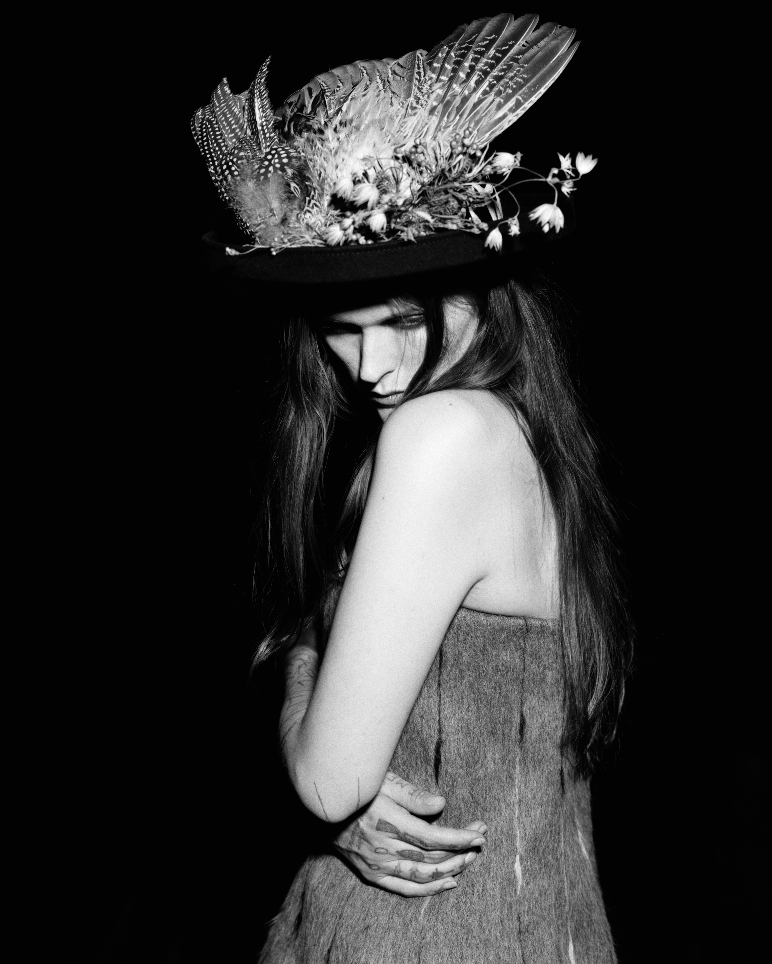 Ethel wears top CARVEN, hat (worn underneath) LORO PIANA and feather hat ISSY BRIGHTMORE