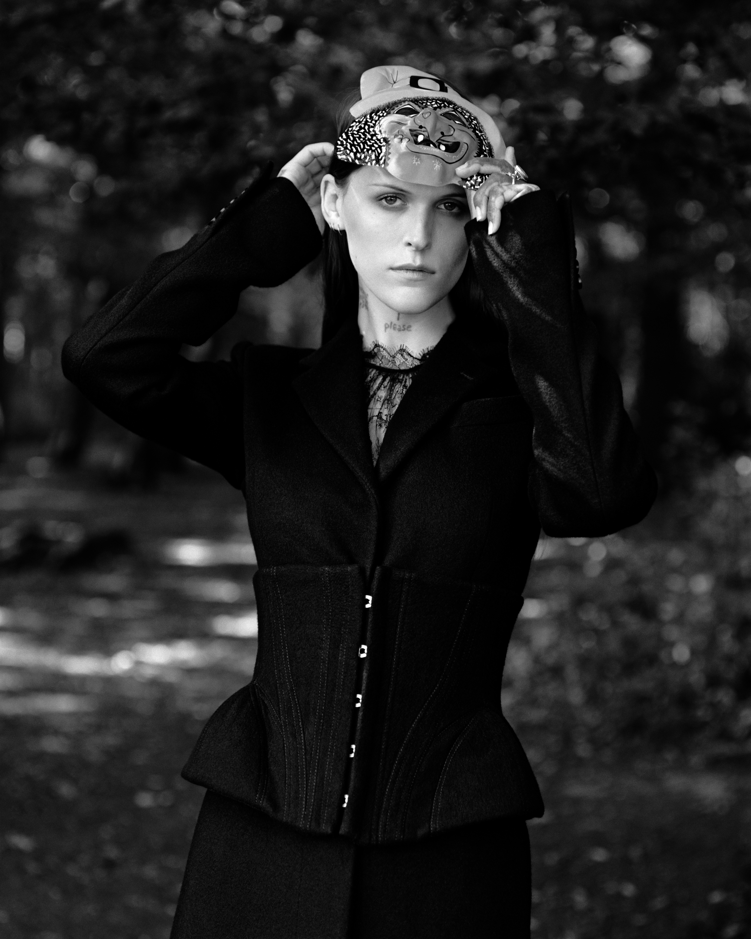 Ethel wears jacket VIVIENNE WESTWOOD and hat LORO PIANA