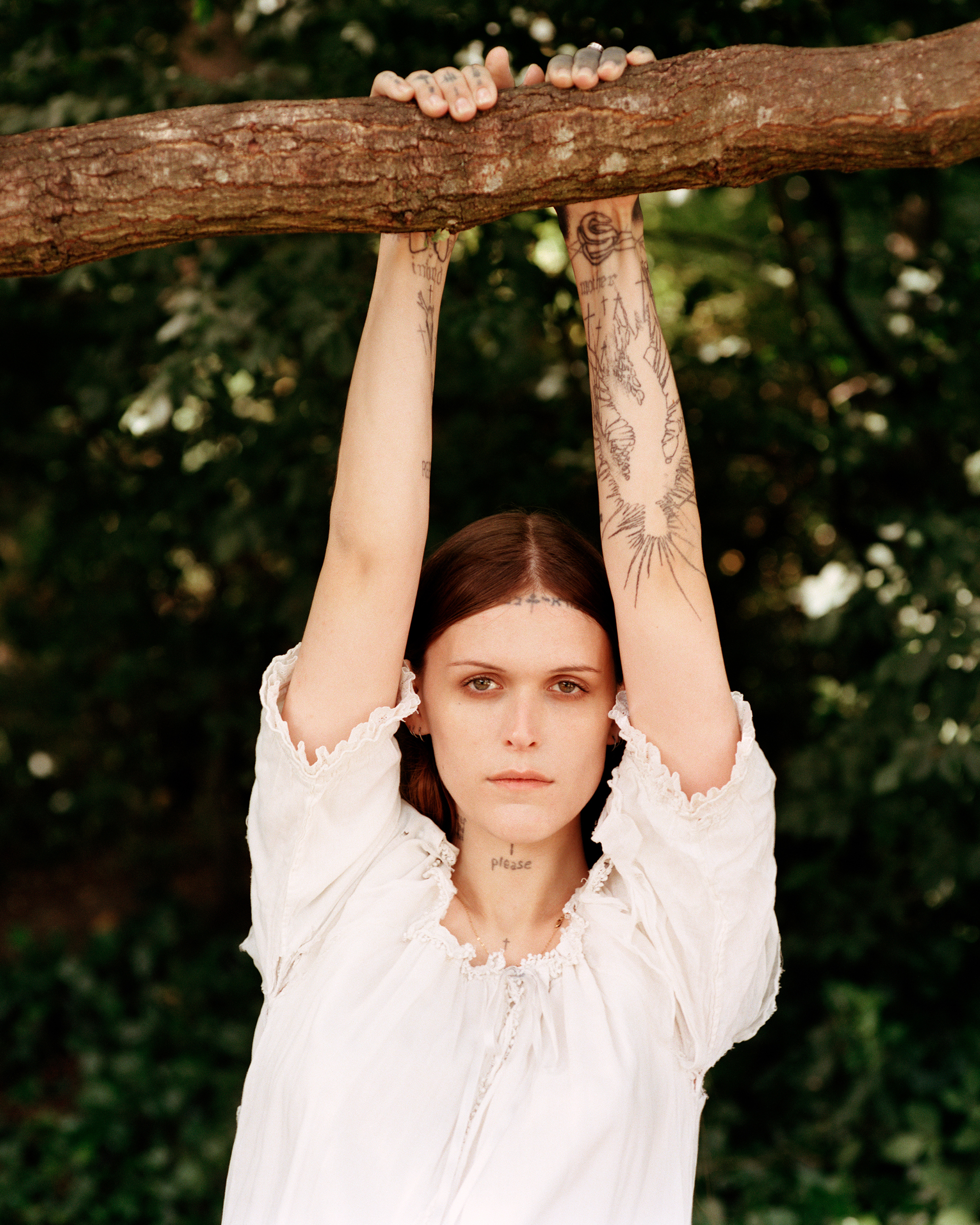 One of the obvious threads that connects Anhedönia with Ethel is their shared defiance of gender norms. Ethel’s “raw, tomboyish spirit” takes Anhedönia back to her own childhood, which she remembers as almost “like Little House on the Prairie,” with the freedom to go “running around barefoot with the boys, jumping in the fishing hole”. At 20, Anhedönia came out as trans in a post on Facebook. Not long before, she’d stumbled on the idea of Ethel after buying herself a flowing white dress and being struck by the vision of a young woman with long brown hair, standing in a wheat field.