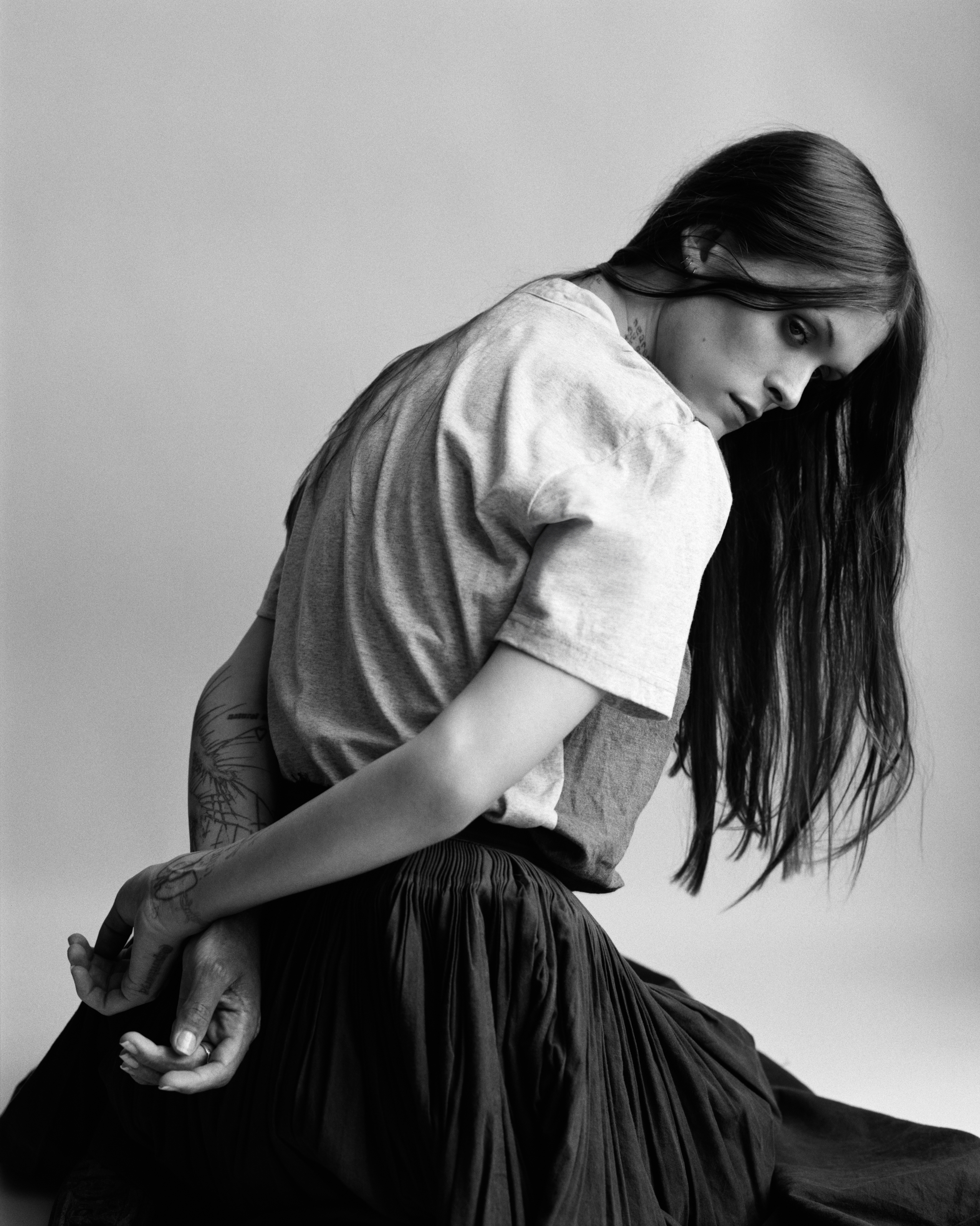 The bad news is that her new album, Willoughby Tucker, I’ll Always Love You, is unlikely to change that trajectory. Perched on a sofa before her FACE photo shoot, Anhedönia has the quiet glow of someone confident that she’s sitting on her best work. In jeans and a baggy sweater, her off-duty look is part high-fashion waif, part bad babysitter. Her forehead tattoo – spelling out the Hebrew names of the angel Gabriel and the demon Ashmodai – peeks out from under her mouse-brown curtains, while her tattooed left hand is now blacked out from wrist to fingertip.