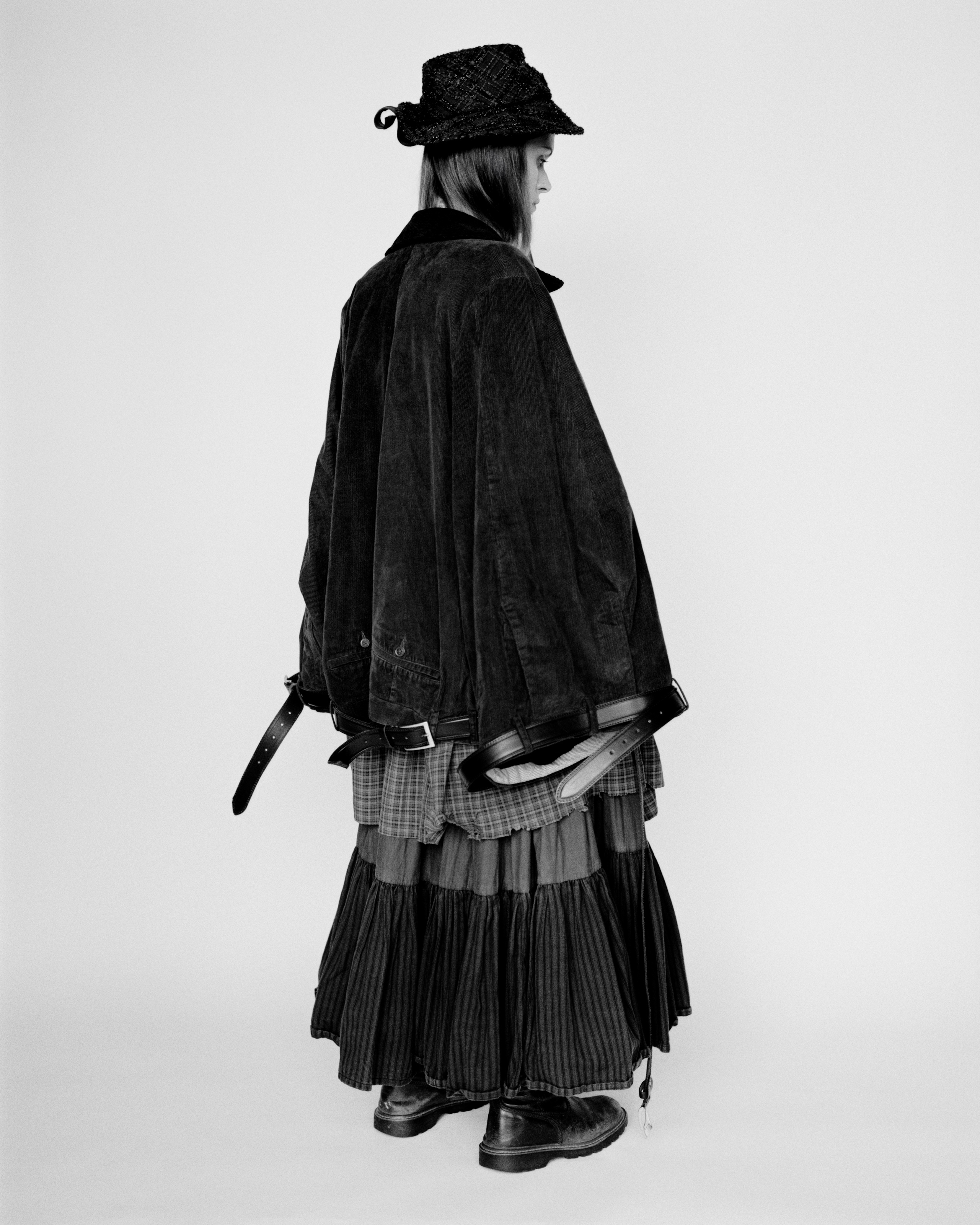 Ethel wears top and skirt VIVIENNE WESTWOOD and hat LORO PIANA