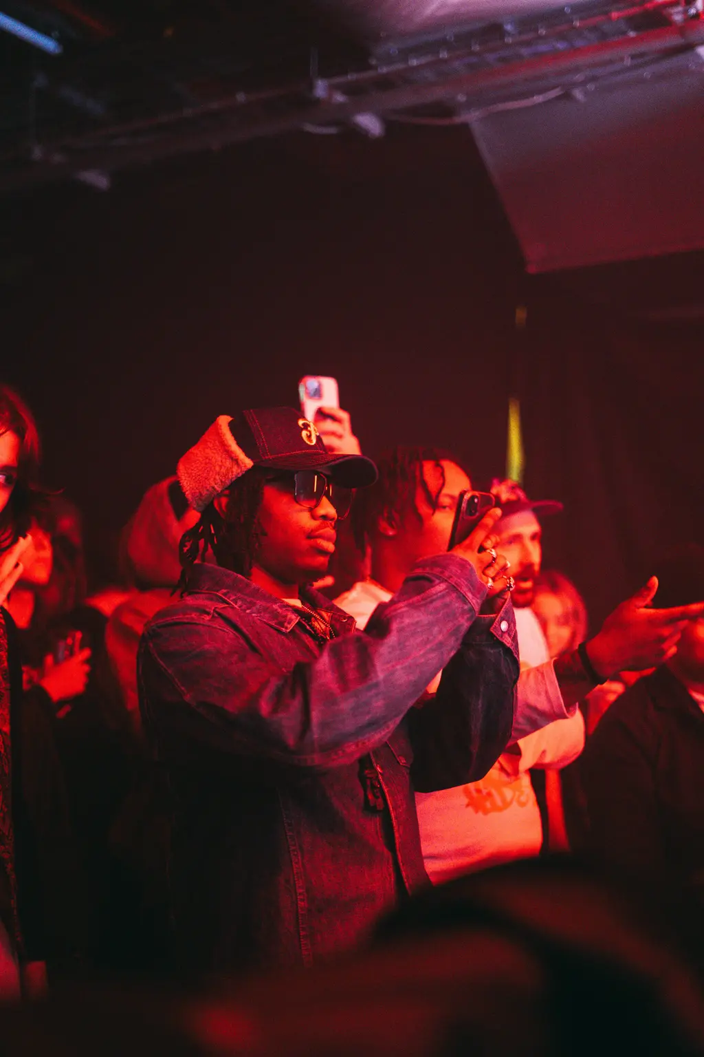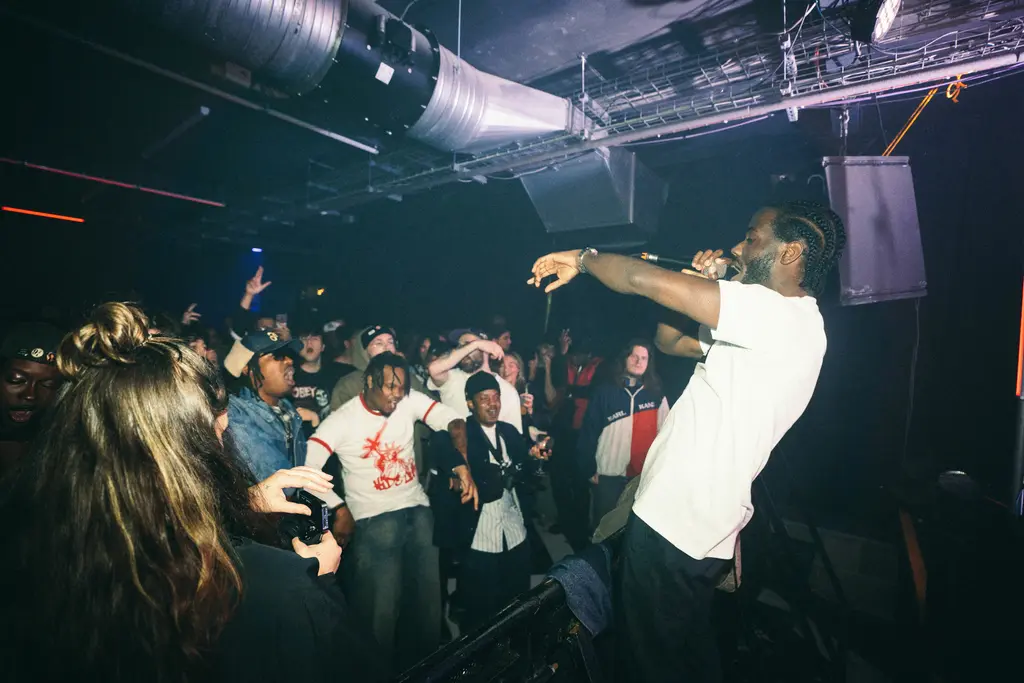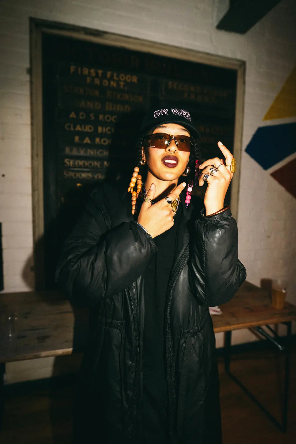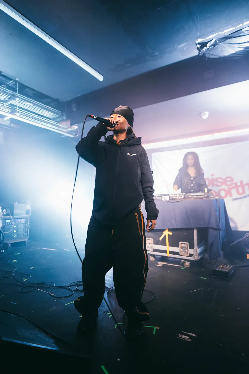 The97Renn was next, proudly representing the North East, which he made no apologies for shouting about. Too right. Renn’s tracks leant into all corners of Southern hip-hop, cloud rap, grime and luxury rap (it’s a thing). His stand-out track, FLY, made with collaborator Sengi, almost set the venue alight, while his Northern charm proved popular with the audience. Sengi and Dan Swift joined Renn on stage to deliver a slew of fierce bars, unfurling the grit that got them there. Together, the three local artists went head to head, one-upping each other with cheeky quips to the audience – a true testament to community.
