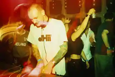 “I was secretly having a bit of a meltdown,” he says over Zoom from his home in LA, wearing one of the many dh2 shirts he’s been wearing in recent months. “I actually didn’t settle into [my DJ] set until I made a commitment to myself to stop being mean internally. I was like, right, no one knows this music. That’s the whole point of why we’re here.” George’s playful, raging DJ set was a sweat-soaked success. And up in the booth, he was supported by friends and collaborators including Charli, The Dare and dh2 signee Kelly Lee Owens, who played a harder-edged techno set earlier in the evening.