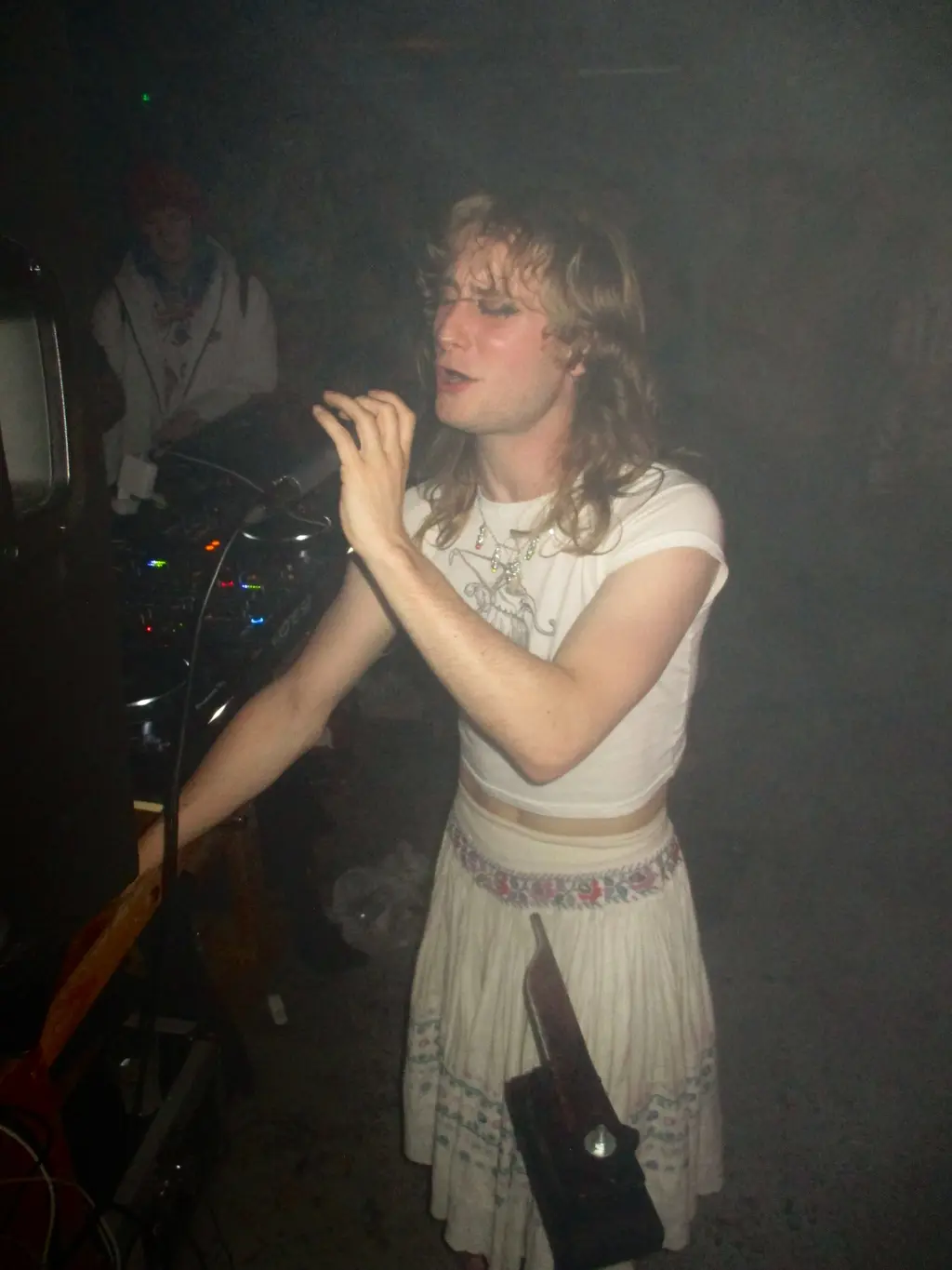 “We take a lot of inspiration from the spirit of the second summer of love and the ’90s warehouse rave scene,” says co-founder Luke, who takes the DJ name White Trashtray, as he looks down to light a cigarette over our group Zoom call. It’s the Tuesday after the event and the founders still seem elated from the weekend’s high. “We use that energy but do it in a very forward-thinking way – for the new generation of kids coming up in the scene. We’re carving out an exciting, welcoming space while keeping that DIY rave spirit, which is why I think GutterRing parties have a unique energy.”