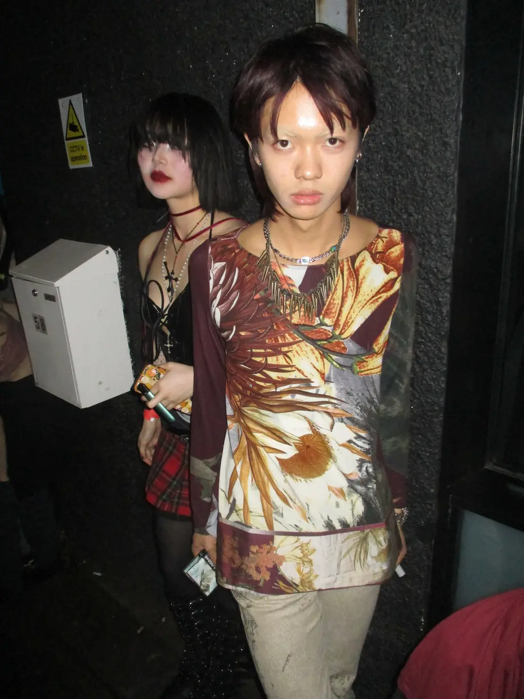 Formed by five friends – V, Luke, Val, Naz and Lucas – GutterRing started by throwing small raves in a disused Russian cafe at the tail-end of the pandemic, a stone’s throw away from Old Street station. Since then, the club night has blossomed into a subversive subculture of its own. The group has been throwing raves in woods and warehouses, embracing the fastest and hardest edges of club music and attracting a head-turning crowd that takes fashion inspiration from cyber goth, punk and the Y2K aesthetic.
