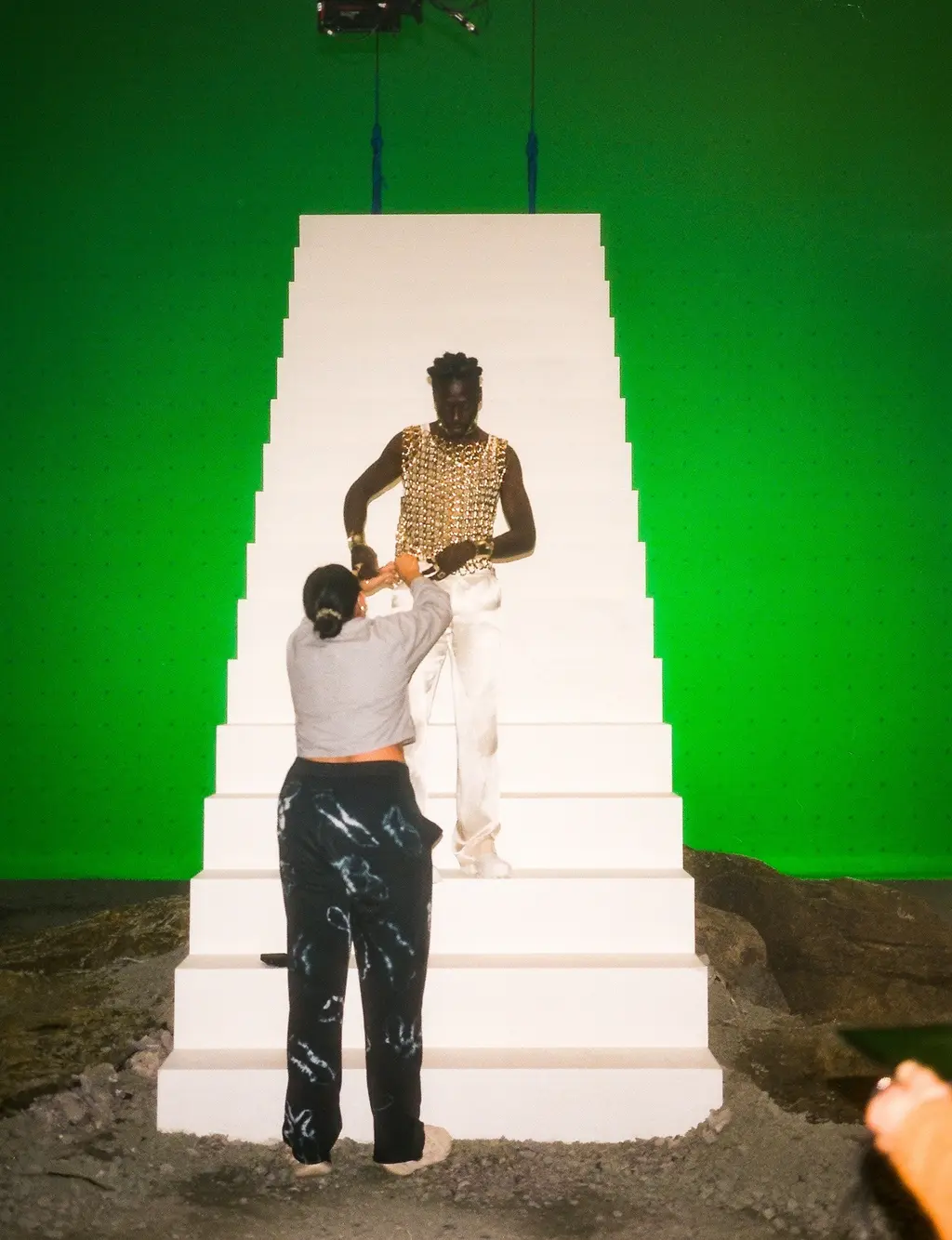 With creative direction from Daniel Sannwald, Made of Gold casts an Afrofuturistic spell on the creation story, replete with its own set of sacred myths and origins. Far from the Garden of Eden, this is the story of the world as told by Ibeyi and Pa Salieu, a palimpsest of ancestries where powerful Yorùbá orishas and bedazzled Black Moors rule land, sea and sky, and twin flames with hot-pink hair dance under cosmic stars and where literal Black magic reigns supreme.