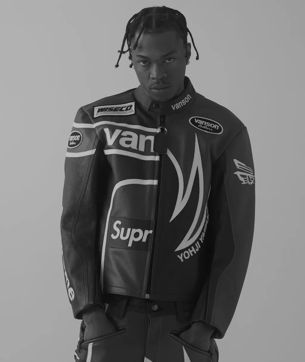 As we finish up the interview, THE FACE’s stylist guides Skilli through some clothing options for his photoshoot: there are Stone Island jackets, a green Vanson Leathers racing outfit from Supreme’s recent collaboration with Yohji Yamamoto and an Off-White hoodie. As Skilli slides it on, we’re told that it’s one of the last designs that Virgil Abloh created before his death. “Virgil designed this?” he asked shortly after, a crescent- shaped grin spreading across his face. He keeps the hoodie and wears it proudly during his set at Rolling Loud.