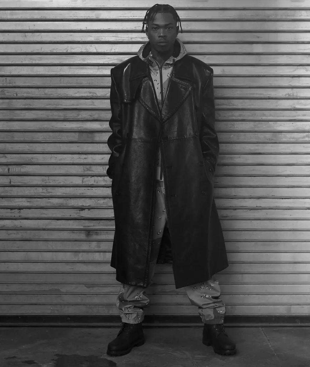 Skillibeng wears jacket DSQUARED2 and shirt and hoodie TELFAR