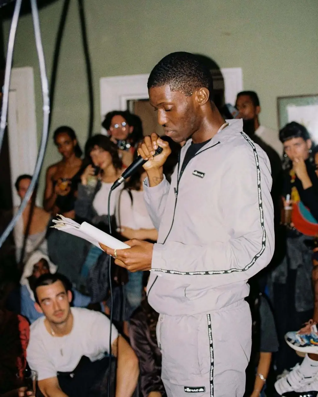 To maintain the Adult Entertainment vibe, it’s important to keep things moving, and the energy high on the night. “One of the key tenets of party poetry is that it’s short, succinct, digestible,” he explains. People might come to the mic with a short story, an excerpt from a novel, an essay. That doesn’t matter: within the space, it’s all poetry. “Everything that happens there is a poem,” he tells me. “We’re gonna keep it through that lens, and we’re gonna keep it short. No one’s gonna read for longer than three to five minutes. It’s a party. We’re having a party.” The Instagram flyers encourage people to acknowledge everyone, arrive early, and accept everything.
