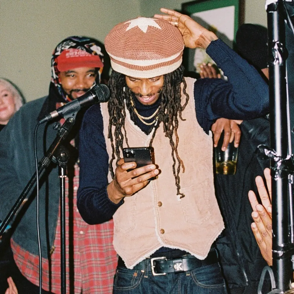 Ku-Ro is an experimental musician who performed in October 2024. He remembers a separate performance by stand-up comedian and film director Arnold Chukwu: “It was funny. He said ‘Man’s not hot’,” he laughs, “and he played a clarinet. That inspired me in general because I hadn’t seen that before.” When it came to Ku-Ro’s own time to perform, he built on that experience, bringing a saxophone and ending by improvising sax and vocals with a delay effect. “I feel like Adult Entertainment is very free.”