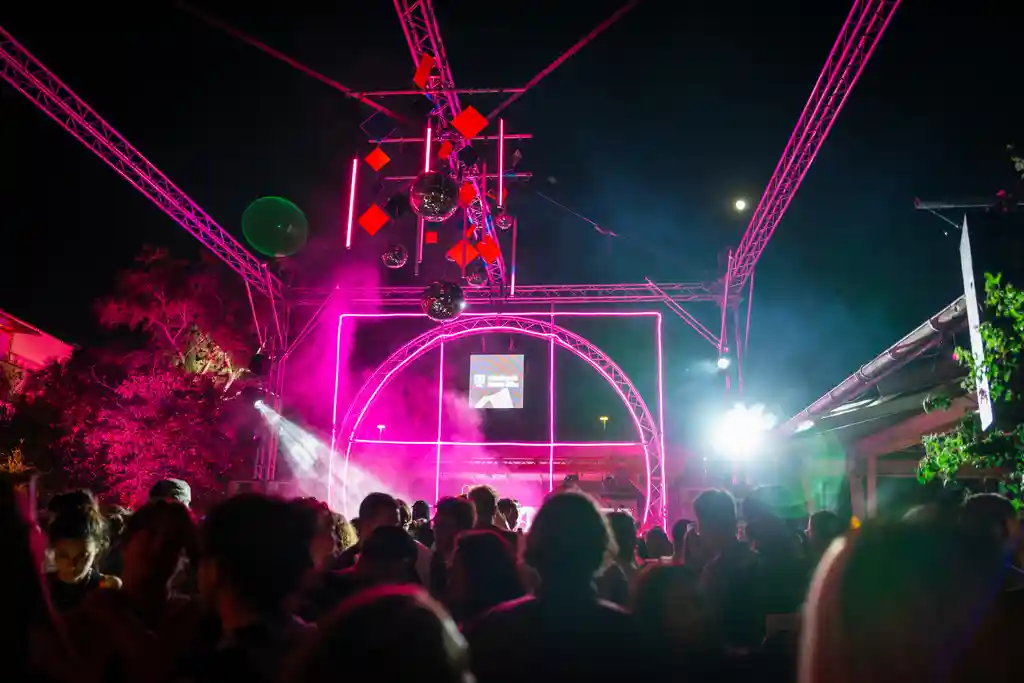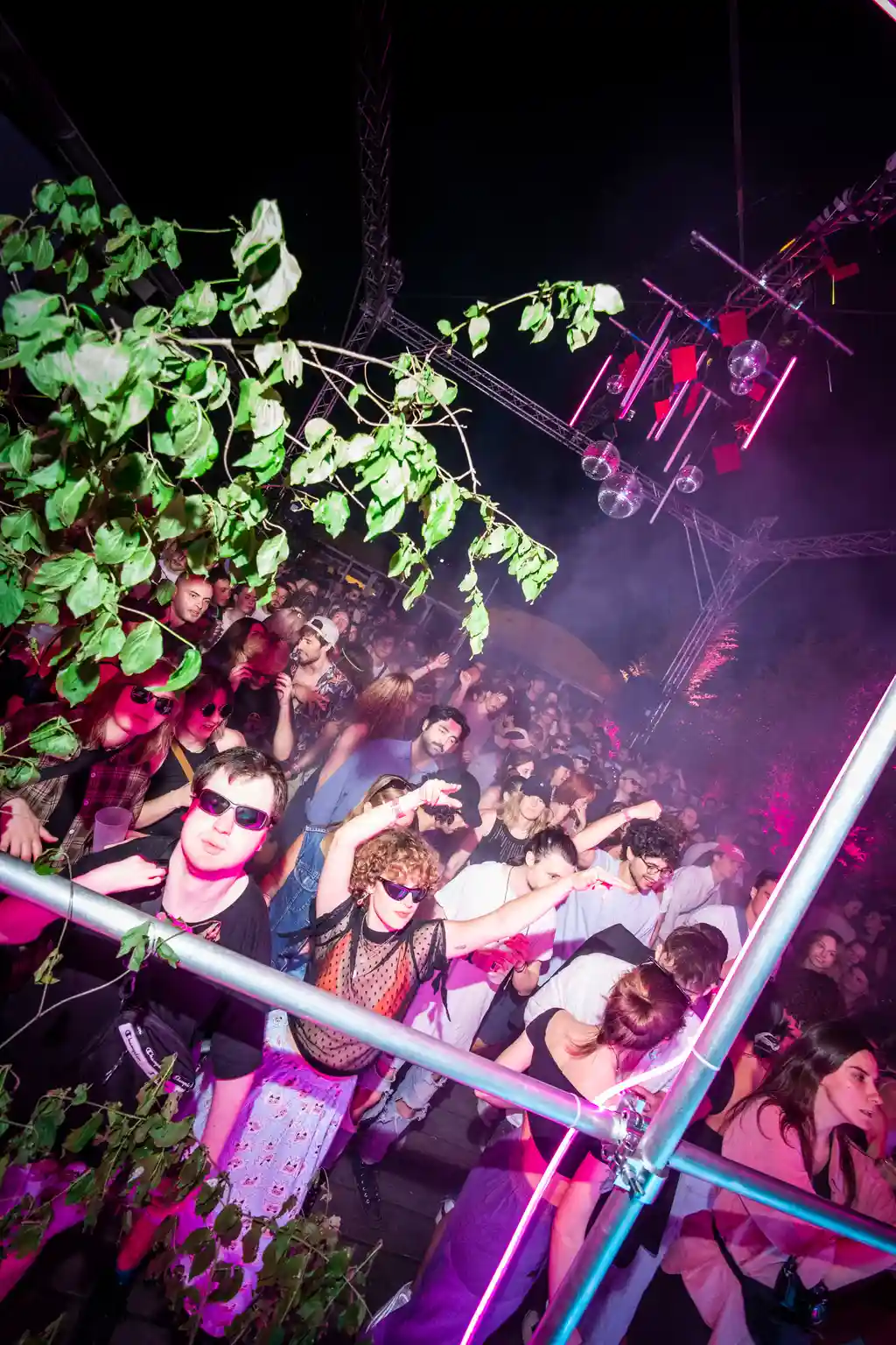 Later on, locals will gather en masse at riverside open-air venue USUS, illuminated by the neon pink glow of stage lights, as they take boat rides down the Danube to cool down in between sets. Jayda’s clearly in her element during her performance, commanding the crowd in a metallic pink two-piece denim look as she dances to her signature blend of disco house behind the decks.