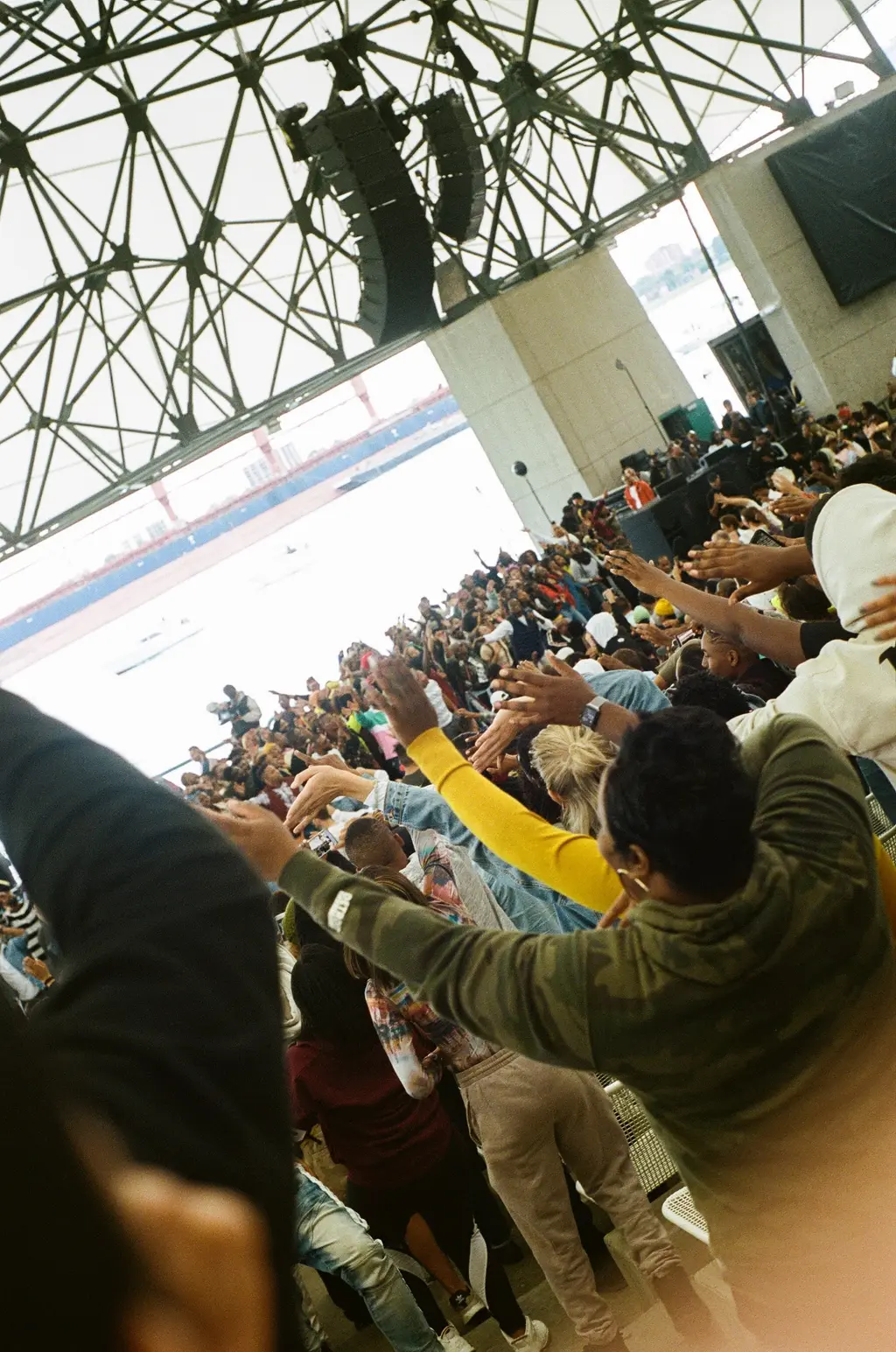 At 2pm – two hours after the scheduled starting time – bright organ music flooded the amphitheatre and the chorus erupted in a divine version of Ultralight Beam. The entire crowd was singing back, making it feel like we were part of West’s own “church.” The music was broken up by a fifteen minute sermon conducted by a pastor from West’s home church. Where the sermon might have had the more secular fans snoozing, even the most atheist fans couldn’t help raising their arms and singing “alleluia” when the music started up again.
