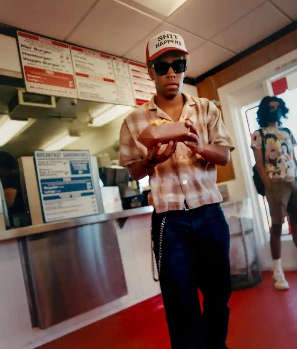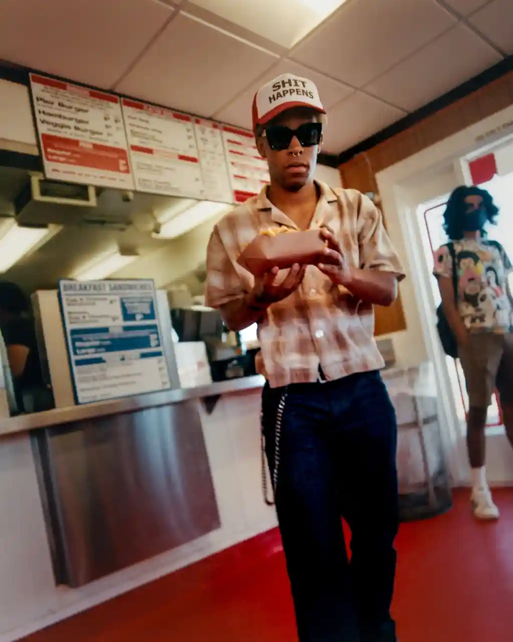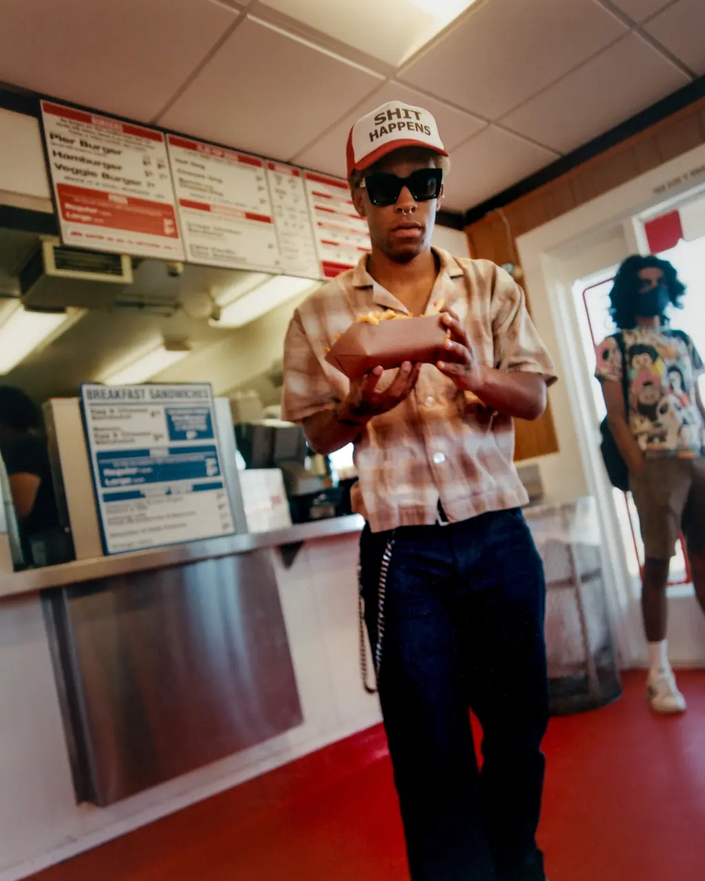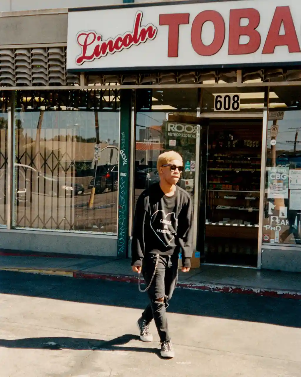 “I’ve been feeling segregation between white and Black artists in pop culture,” Hoopla says. Whether it’s backstage at festivals or people coming up to him after shows, he’s experienced discrimination because of his race. “People are hating on me, it’s very blatant, it’s weird,” he tells me, choosing not to elaborate. “It doesn’t feel good.” On his first single from his SoundCloud days, 2017’s down-tempo lost cause//, Hoopla warns in the chorus: “And If I die young/I was born with a target on my head”. He knows there’s pressure from the social and political climate to make something serious.