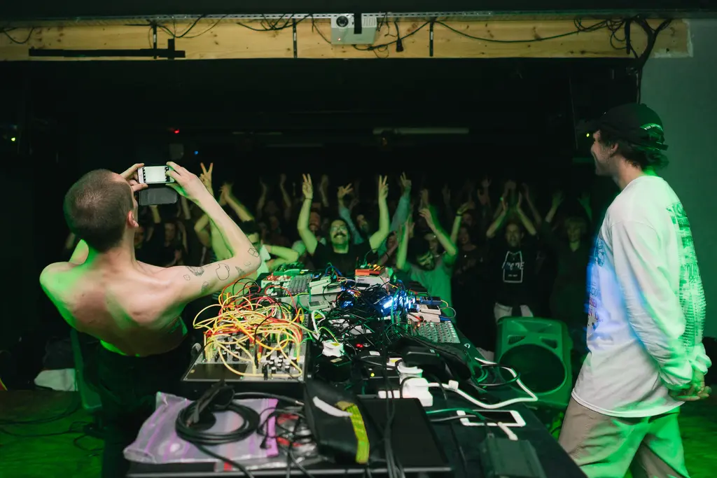 On a Saturday night in the beloved Lisbon arts venue Galeria Zé dos Bois, the duo lit up the sweaty room with flashes of eerie neon green, tearing through a blaze of harsh noise, hypnotic vocal outbursts and barrelling techno workouts that seemed to swallow the crowd whole.
