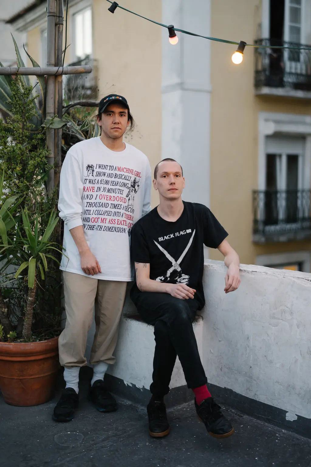 We catch the Raf Simons-approved Bristolian punk-techno duo before a sweaty show in Lisbon.