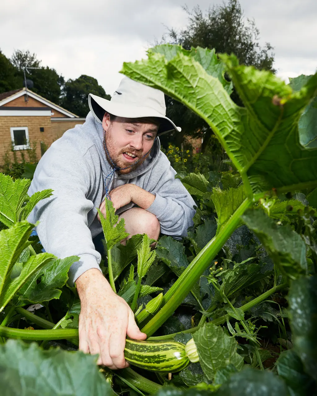 “It was my girlfriend who planted everything but I do help with maintenance,” explains Mount, from his veg patch. “We’ve got loads of courgettes – too many, if anything. We don’t know what to do with them. But also garden peas, tomatoes, chickpeas, corn… it’s a good little plot.”