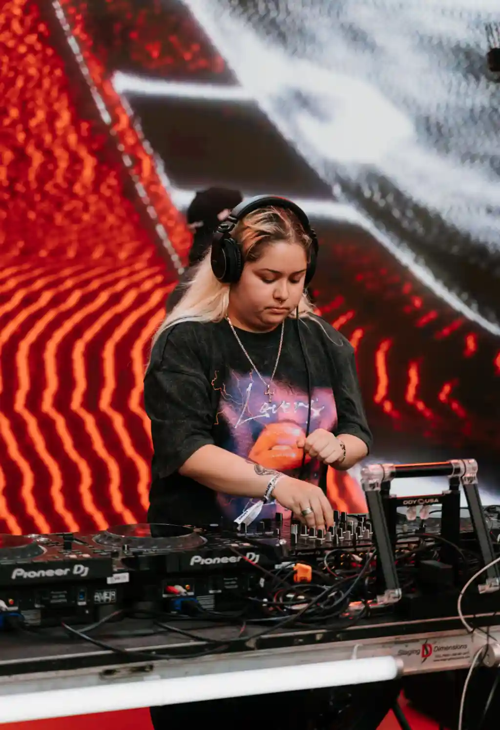The HUGO GARAGE space was an all-red, roofless area, designed like a F1 garage, and featuring a VCARB replica car for photo opps. Following a warm up set from well-respected experimentalist DJ SEL.6, fellow Miami local El Gusano took over the decks. At this point the sky got a little darker, the beats got a little scuzzier and the vibe loosened up when a brief rain shower forced any too-cool-to-dance attendees to take shelter underneath the stage and huddle-up close to the decks – although one person who raved in the pouring rain got a special shout out from the suave host, who was dressed in a pink HUGO suit.