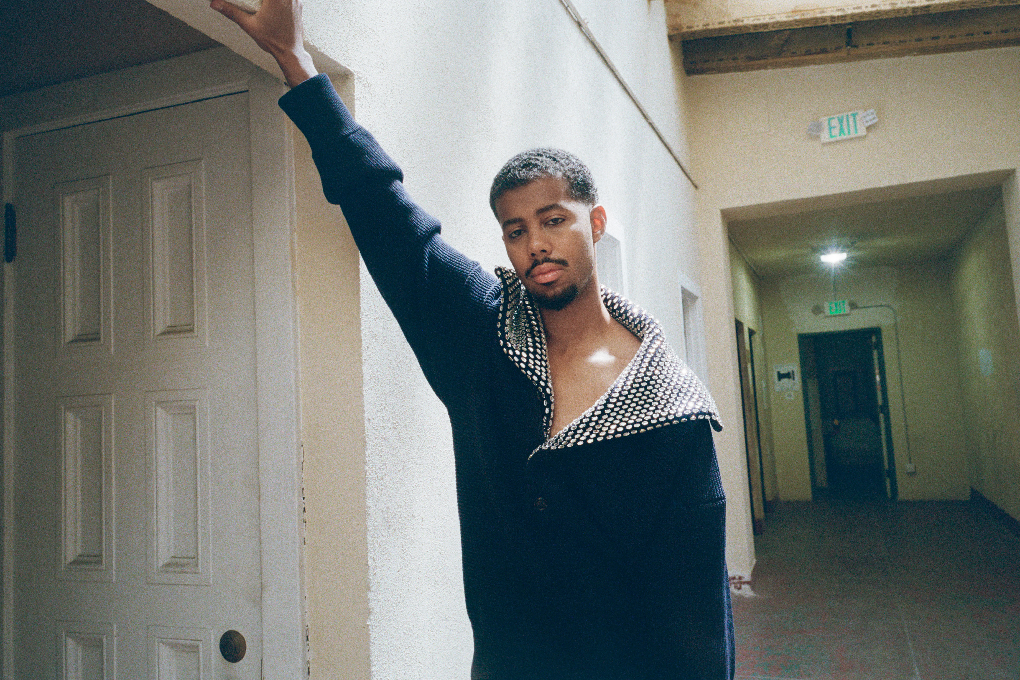 Mustafa wears jacket and trousers WILLY CHAVARRIA and T-shirt LOS ANGELES APPAREL