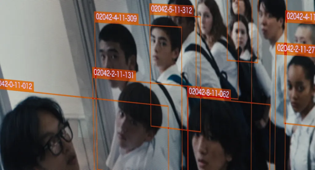 Midway through Happyend, the dystopian narrative debut of Japanese-American filmmaker Neo Sora, a pivotal confrontation takes place as two delinquent teenagers drag a stolen subwoofer through a foreboding metropolis.