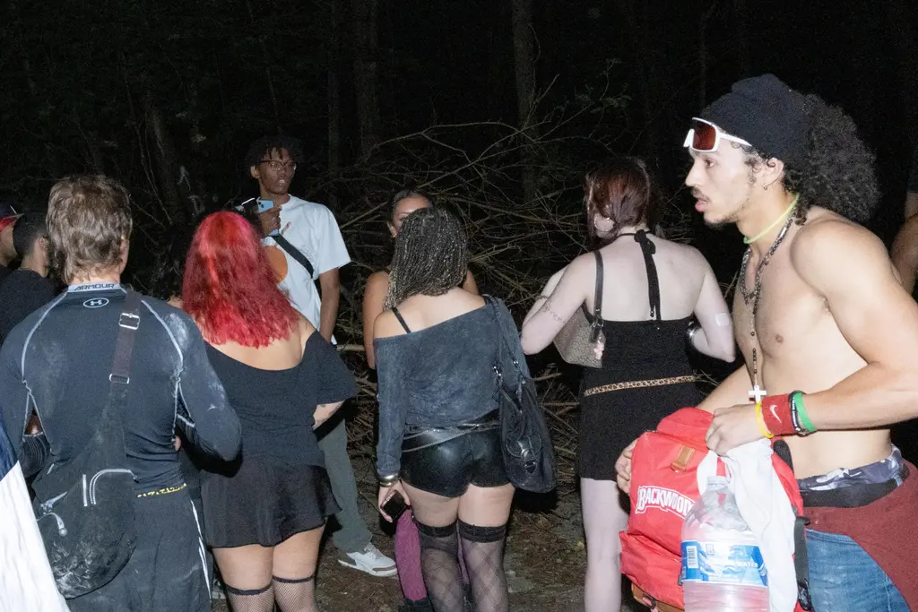 Suddenly, we’re back in the cool night, trying to escape the tree maze as police shepherd us along. It’s unclear what happened. Were some fusty Staten Island Karensenraged by the beats? Did late-night trail walkers narc? A chorus of Where’s the afters? and Fuck the police! rings out.